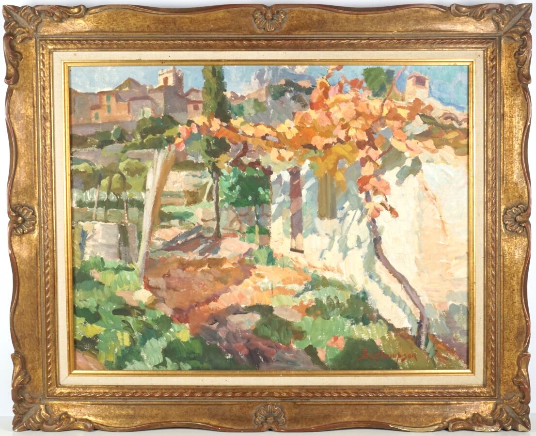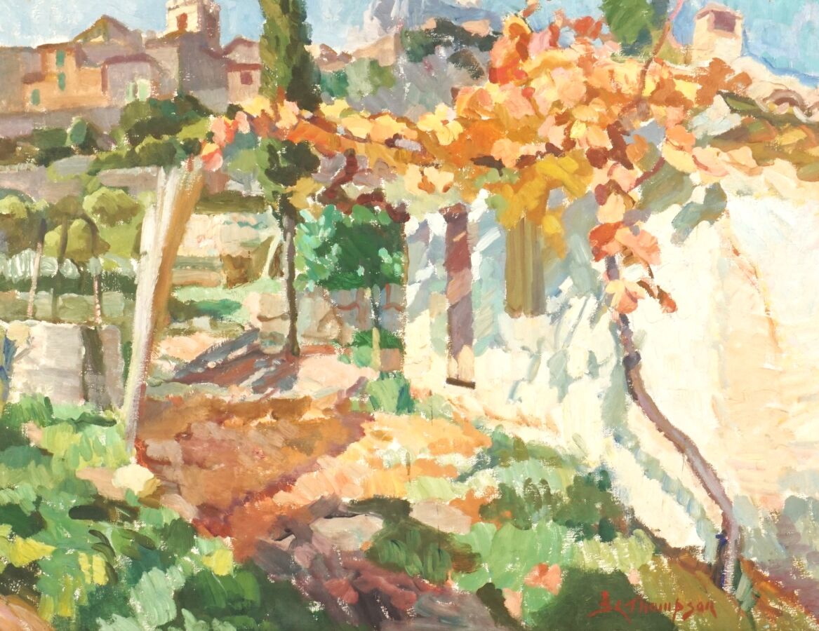 Sidney Lough THOMPSON (1877-1973), "Le cabanon - St Jeannet" circa 1950, huile sur toile signée en bas à droite, 50 x 65 cm.