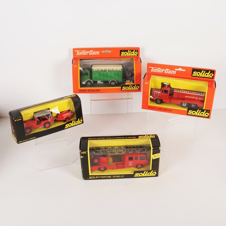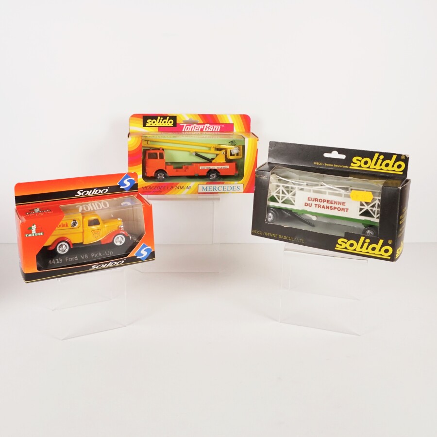 SOLIDO : Ensemble de 18 véhicules échelle 1/43 comprenant divers modèles, dans leurs boîtes d'origine (2 véhicules sans boîtes, quelques usures et pliures aux boîtes, petites usures).