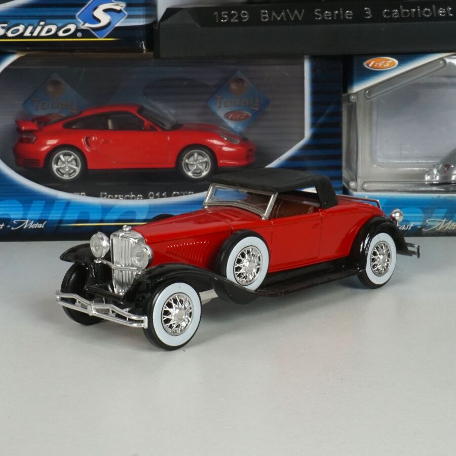 On y joint LES JOUETS SOLIDO, réédition HACHETTE : Duesenberg J Spider, 1935, échelle 1/43ème, rouge et noire, présentée en boîte d'origine.