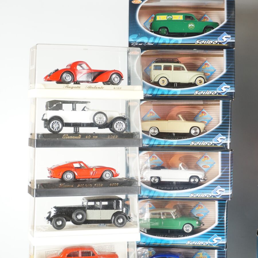 SOLIDO : Ensemble d'environ 52 véhicules, échelle 1/43e, divers modèles, présentés dans leurs boîtes d'origine (usures, traces, usures aux boîtes).