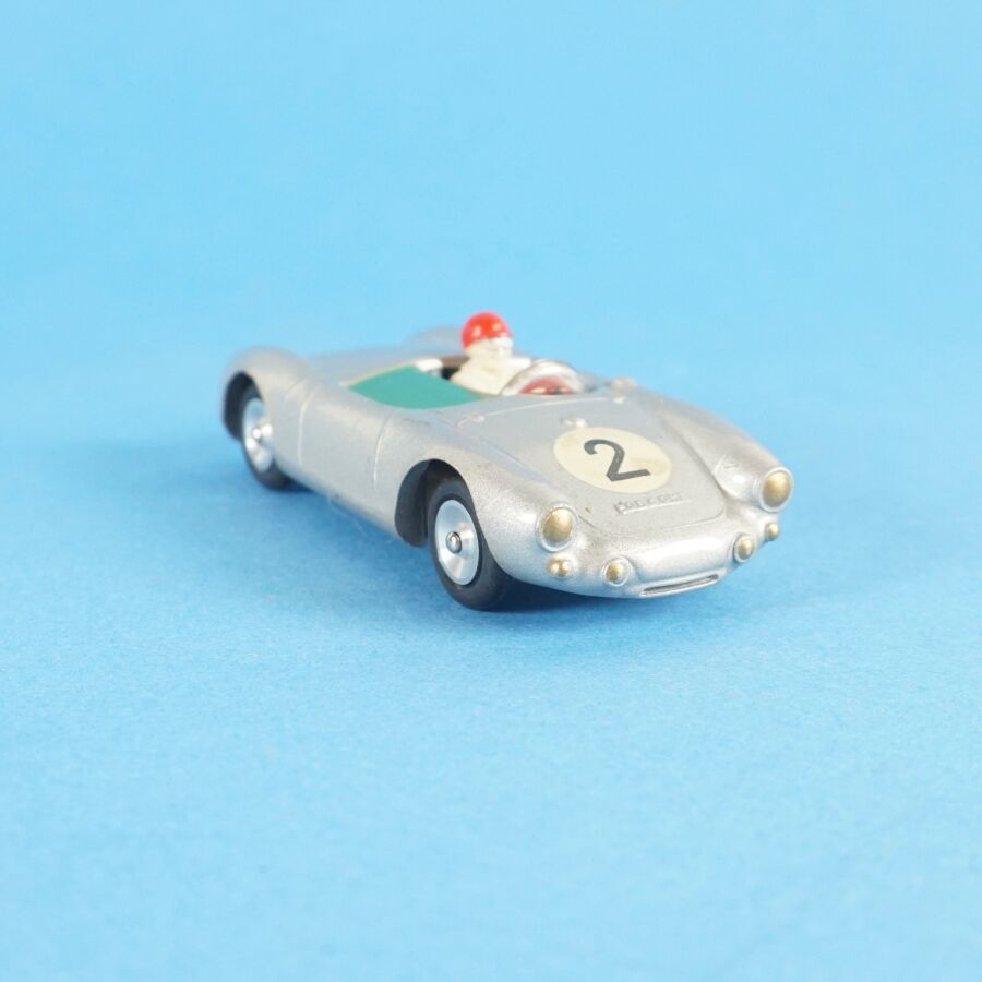 SOLIDO : Porsche type 550/1500 RS "Spyder", grise, n° 2, avec conducteur, porte une étiquette "Louis Vuitton" dessous, présenté dans sa boîte d'origine (usures à la boîte, scotch, infimes traces, bel état).
