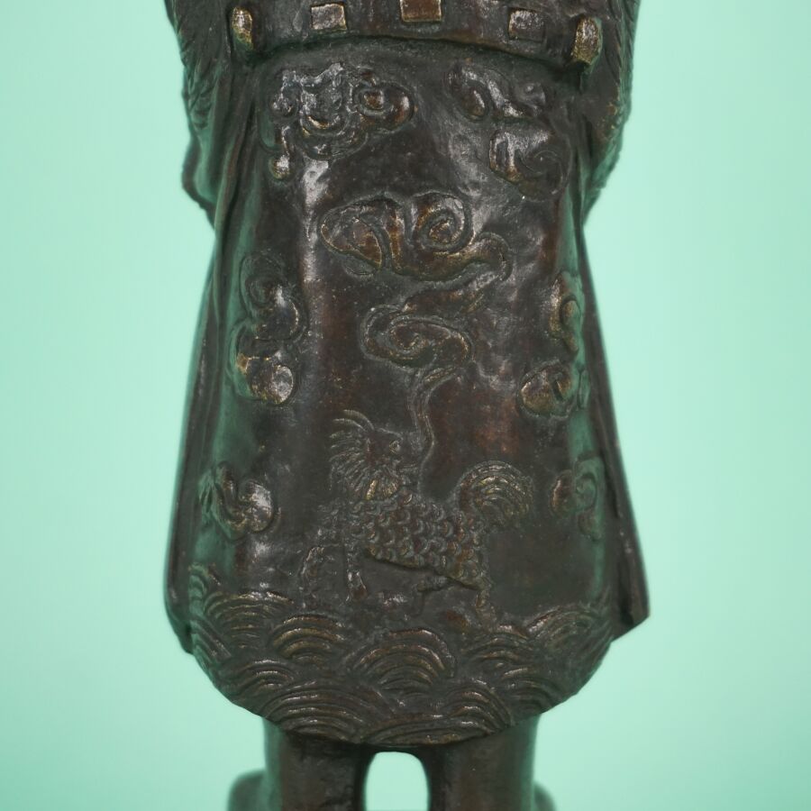 Statuette en bronze à patine brune figurant un mandarin debout en tenue de cérémonie, circa 1880 - 1900, Vietnam, H. 23 cm.
