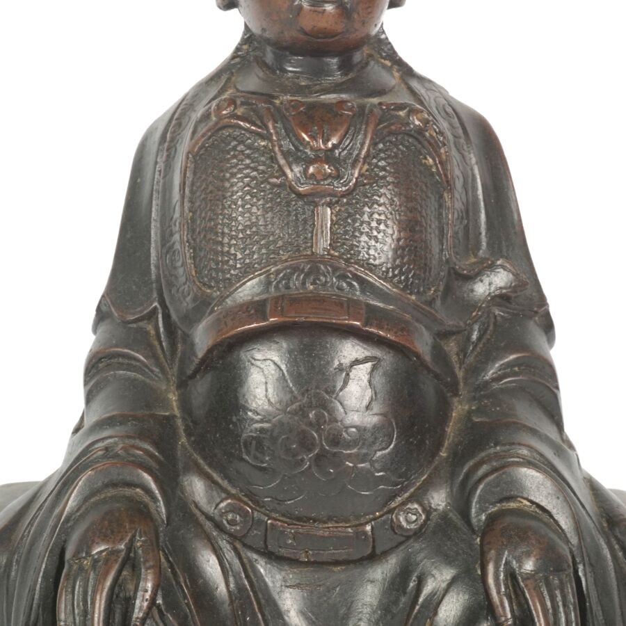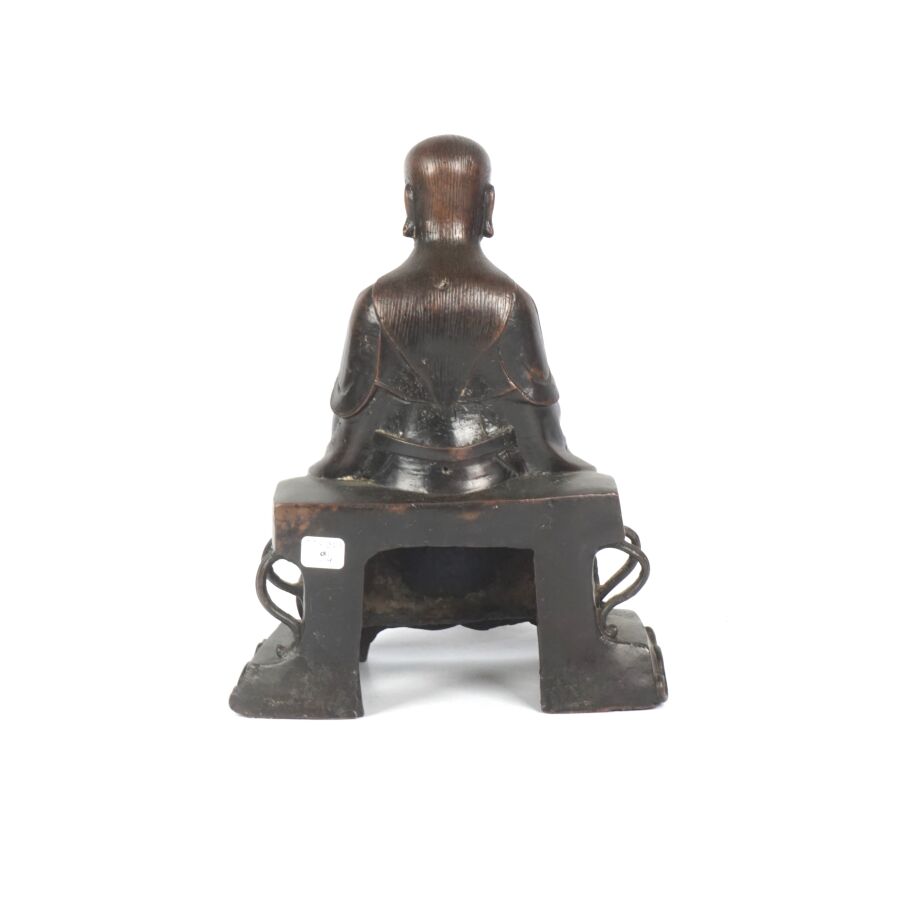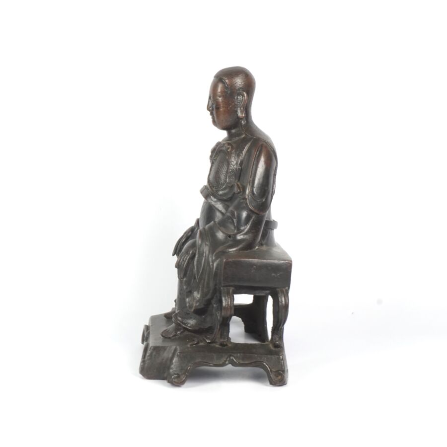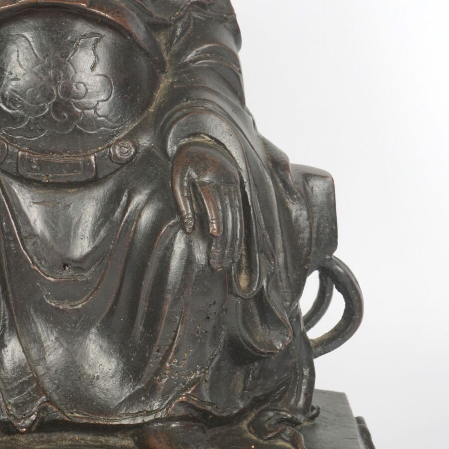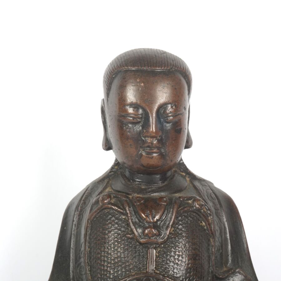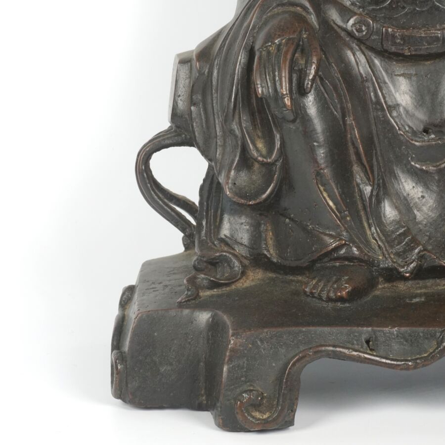 Statuette en bronze représentant un des quatre rois célestes de patine brune, Chine, époque Ming, 17ème siècle H. 31 cm.