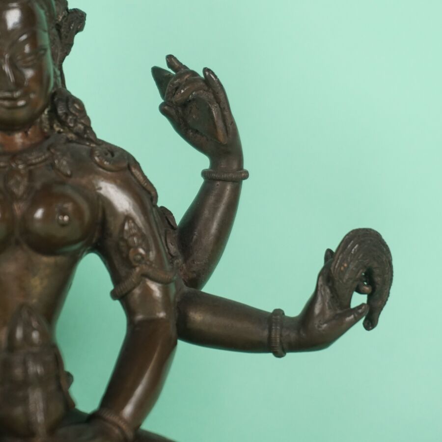 Statuette en cuivre figurant une Tara verte tenant des attributs et la kalasha, Tibet, début du 20ème siècle, H. 16 cm (usures normales à la patine). * Expert : Cabinet Ansas & Papillon, De Léry