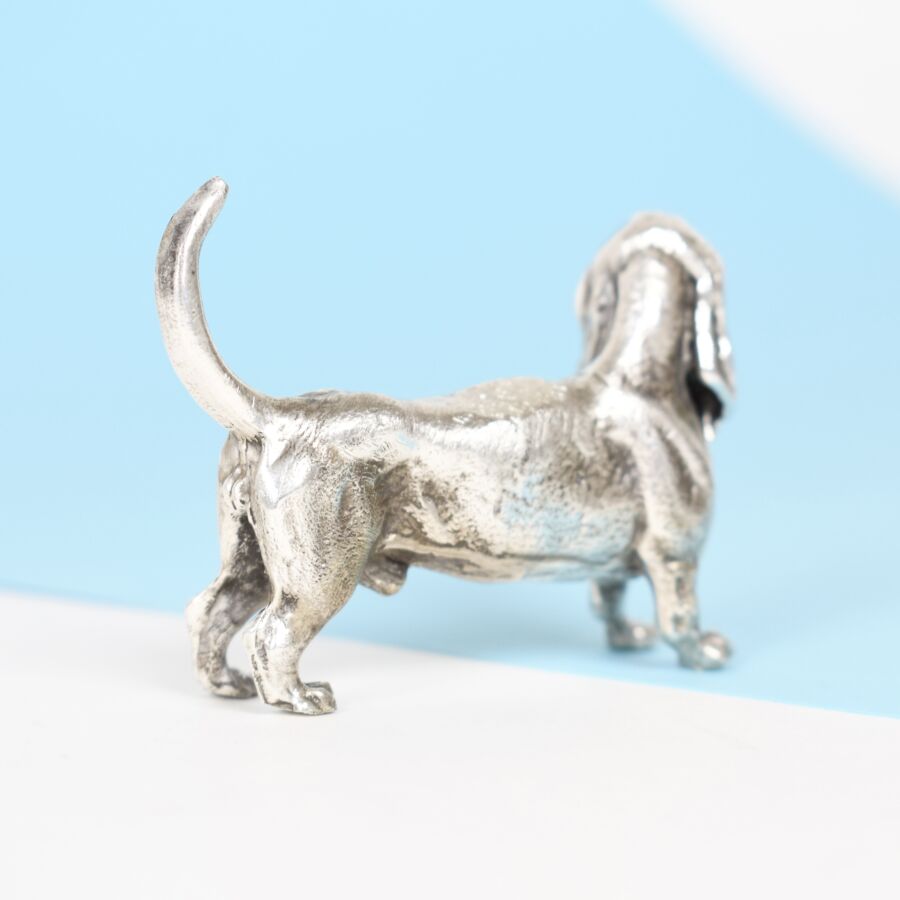 Statuette figurant un basset artésien en argent massif, poinçon Minerve 1er titre, Dim. 6 x 4.5 cm