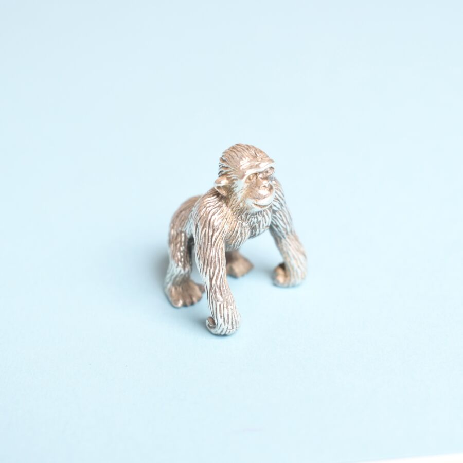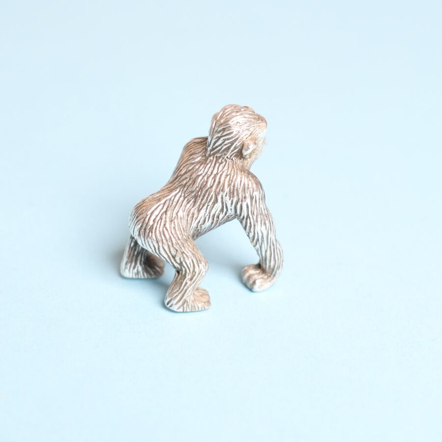 Statuette figurant un gorille en argent massif (800/oo). Dim. 3 x 2 cm, Poids brut : 130 g.
