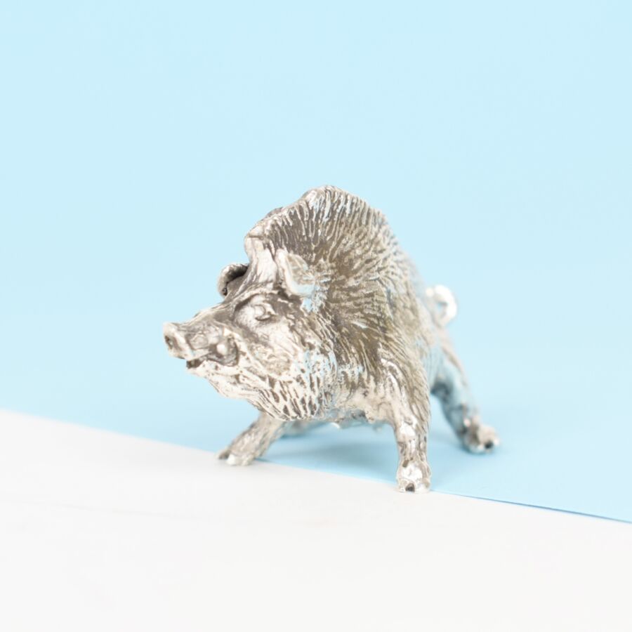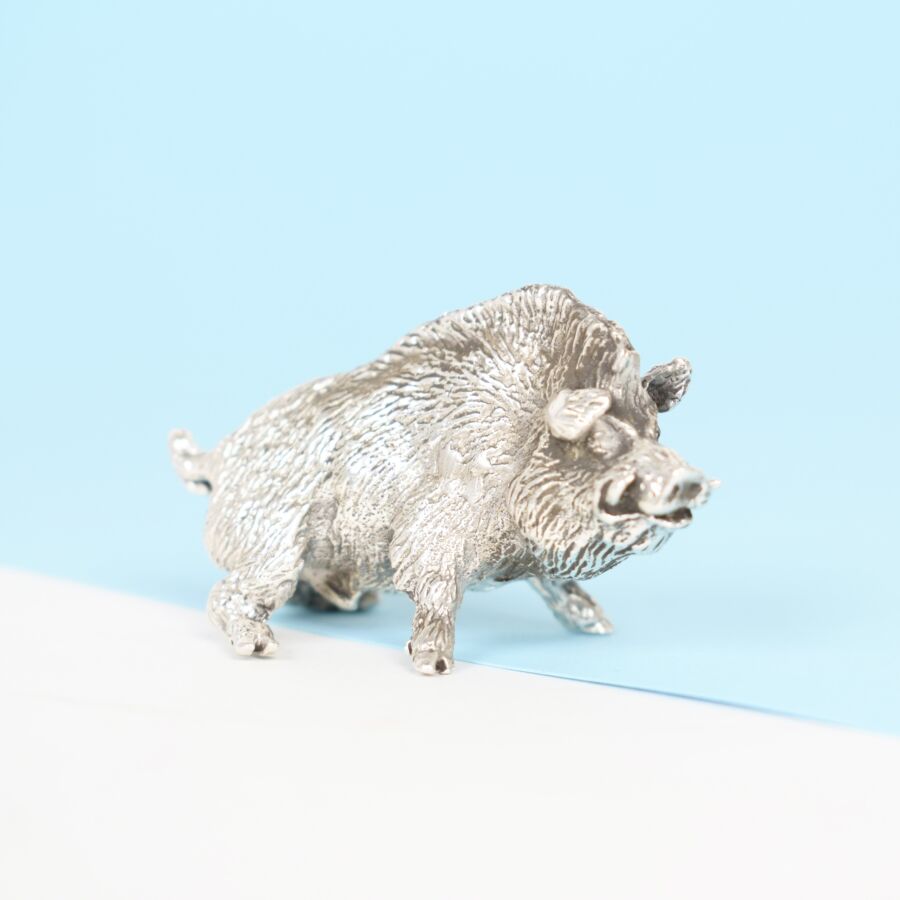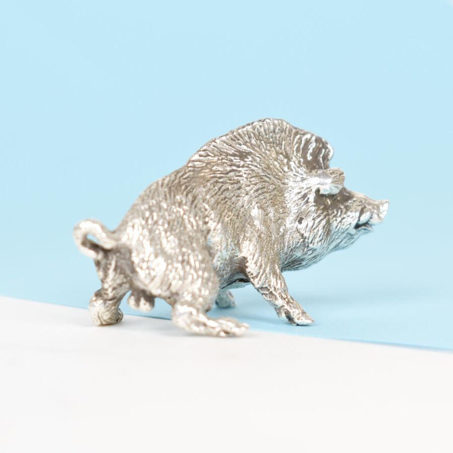 Statuette figurant un sanglier en argent massif, poinçon Minerve 1er titre, Dim. 5 x 2.7 cm. Poids : 70 g.