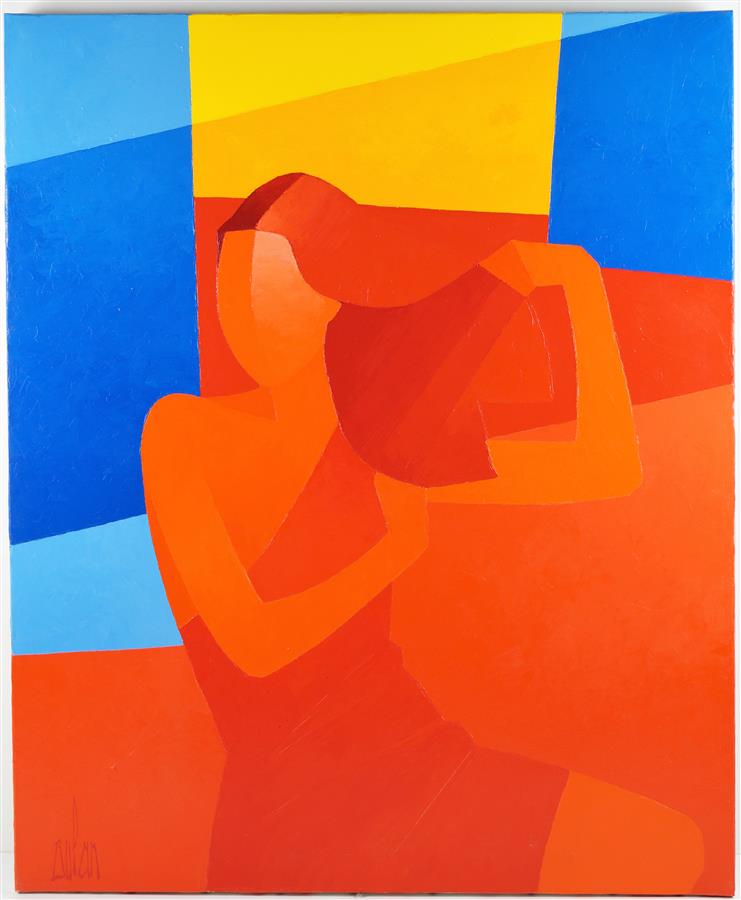 Stéphane BULAN (1954), "Dans le rouge" huile sur toile signée en bas à gauche, 73 x 60 cm (quelques traces de piqures).