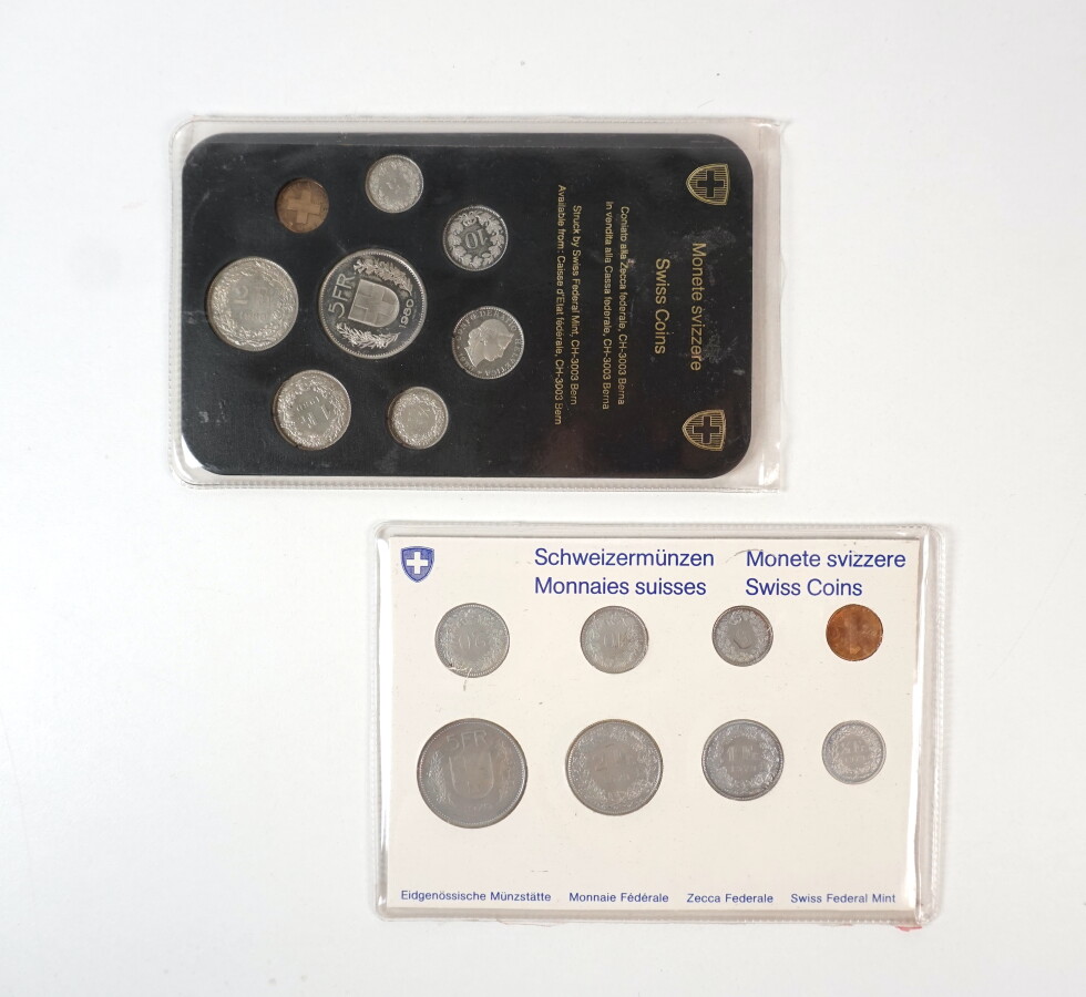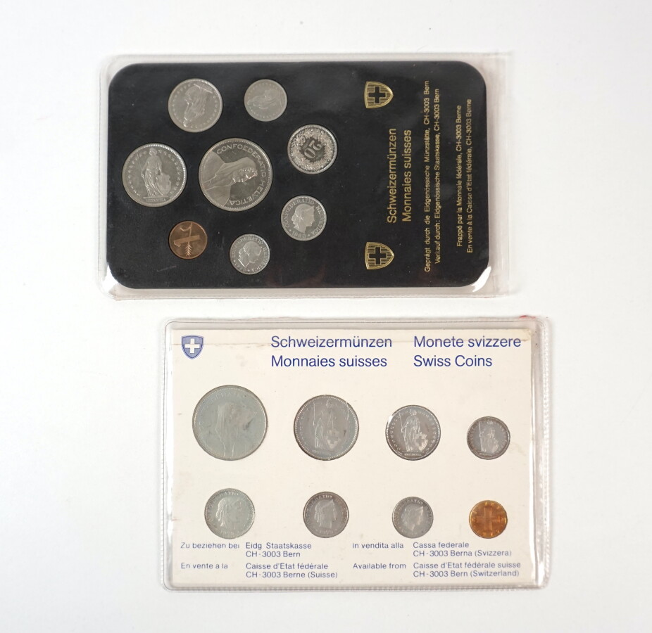 SUISSE : Ensemble de 2 séries de 8 monnaies "Fleur de Coins", 1979 et 1980.