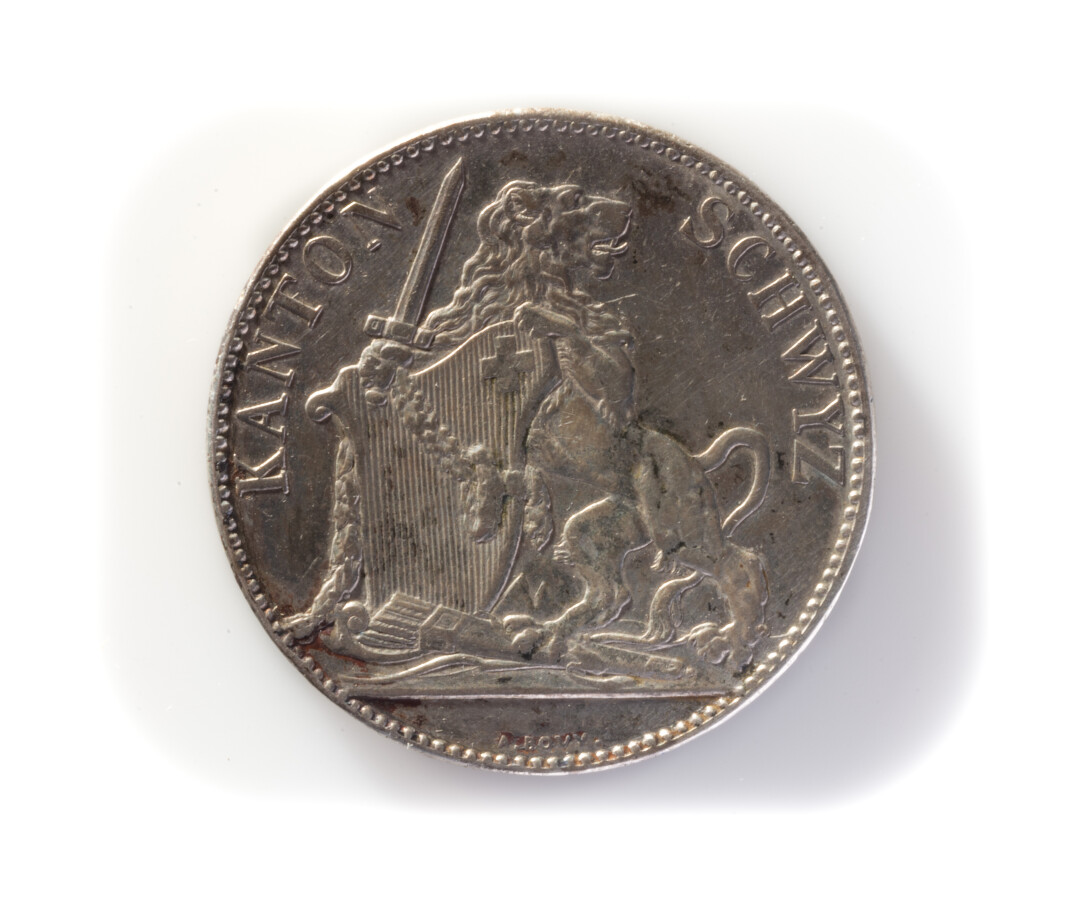 SUISSE - SHWYZ : 5 Francs Tir fédéral, 1867, argent, TB. Poids brut : 24.8 g environ. (8 000 exemplaires).