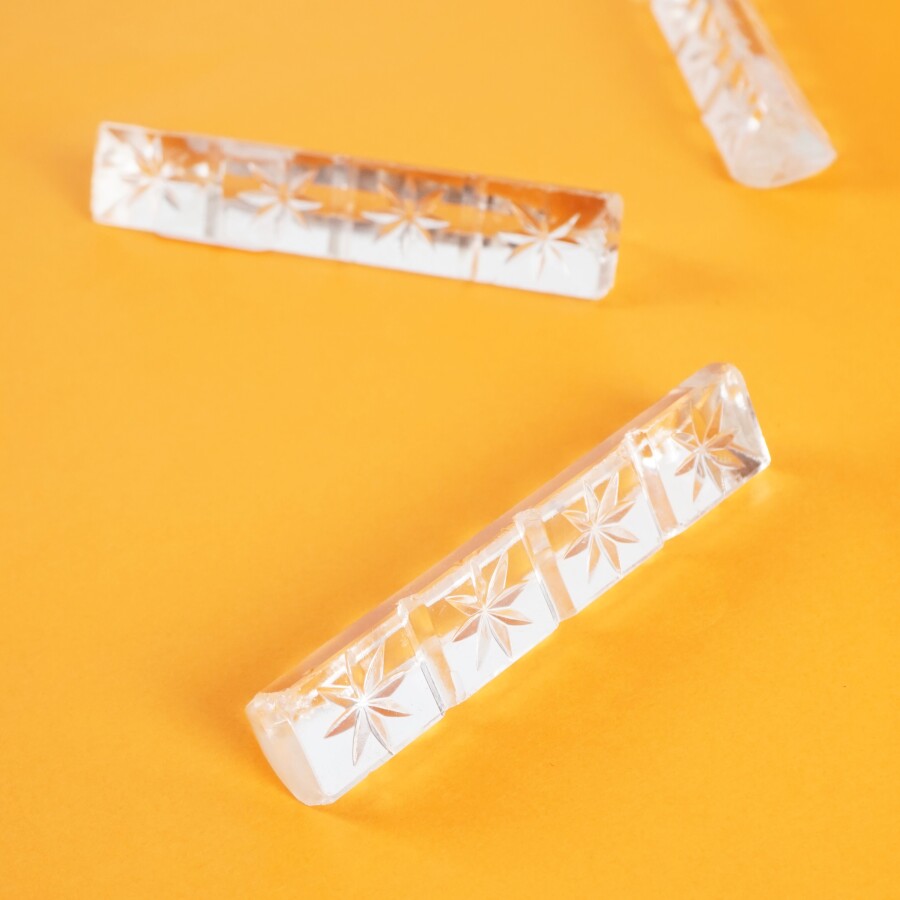Suite de 6 porte-couteaux en verre à décor d'étoiles en creux, L. 9 cm (petites égrenures).