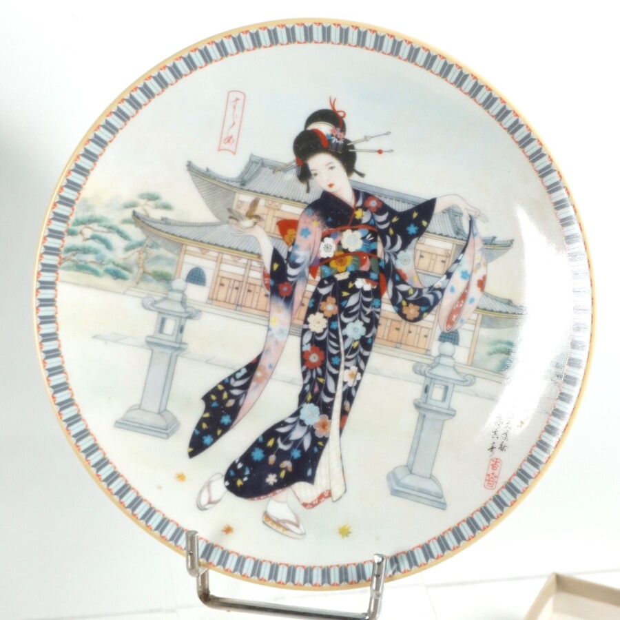 Suite de 8 assiettes à dessert, fabrication moderne japonaise, présentées dans leurs boîtes d'origine, D. 22 cm.