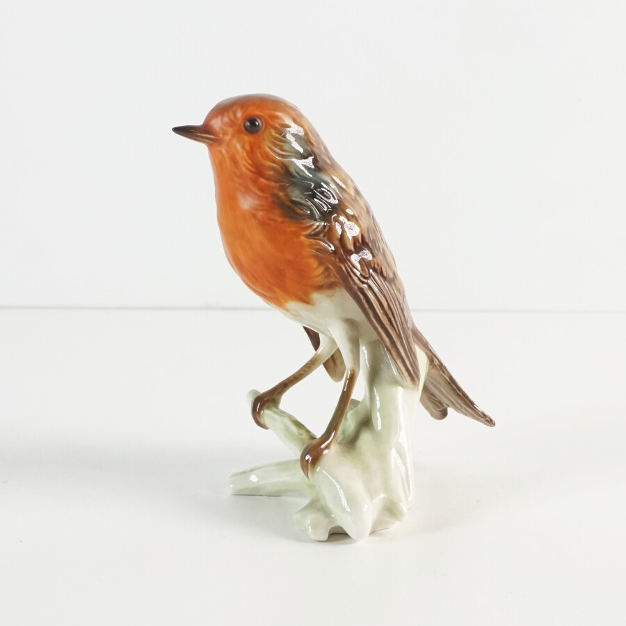 Suite de quatre sujets en porcelaine émaillée polychrome figurant un cacatoès et trois moineaux, production Angleterre et Allemagne, marqués dessous, H. de 21 cm à 7.5 cm.