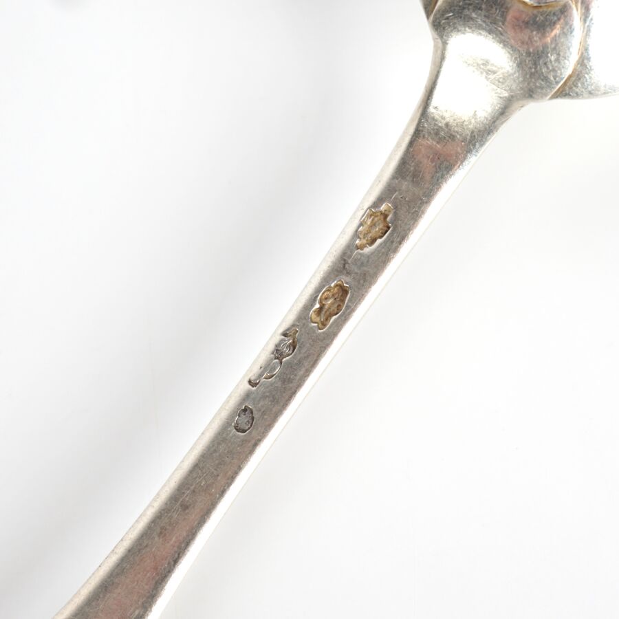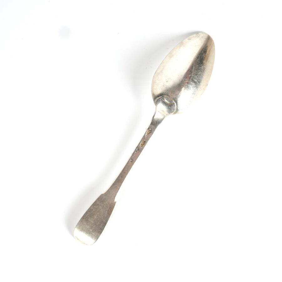 Suite de six cuillères à café en argent, poinçons aux Fermiers Généraux, poinçon de décharge probablement Paris (1781-1789) et "P" couronné, modèle uniplat, Poids brut :132 g environ.