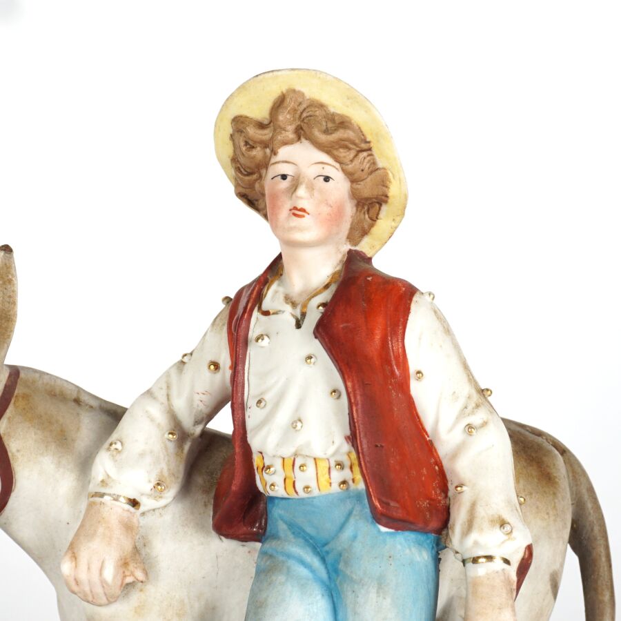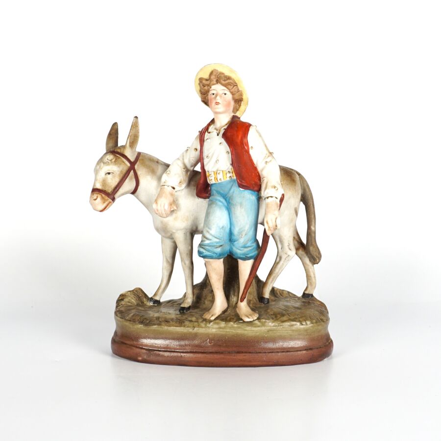 Sujet en biscuit figurant un jeune paysan et son âne, porte une trace de signature à l'intérieur, H. 18.8 cm.