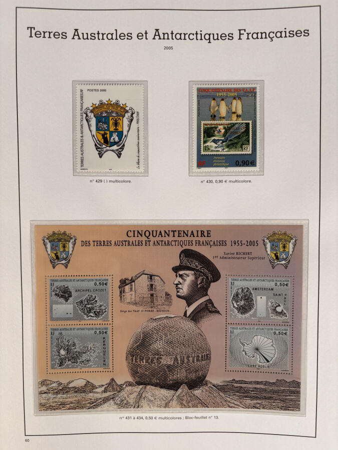TAAF: En album YVERT avec pochettes, collection de TP N** complète de 1955 à 2006, SUP et forte cote.