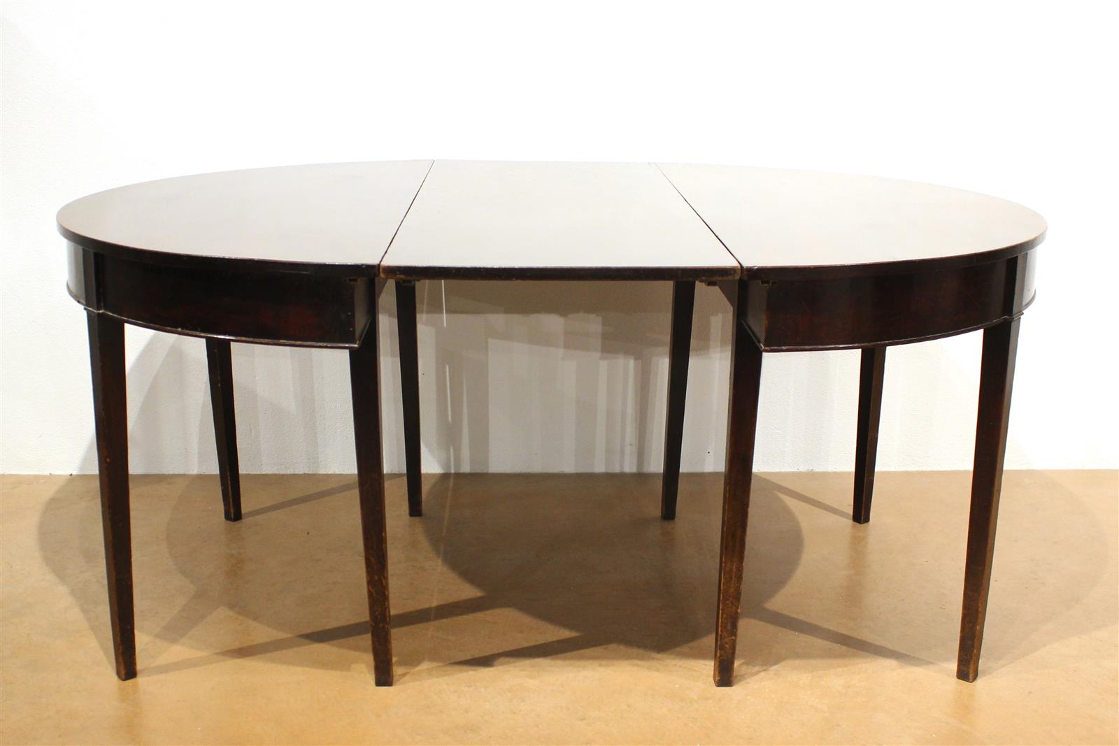 Table de salle à manger ovale en acajou, Angleterre, 20e siècle, D. 110 cm, H. 73 cm (avec une allonge)
