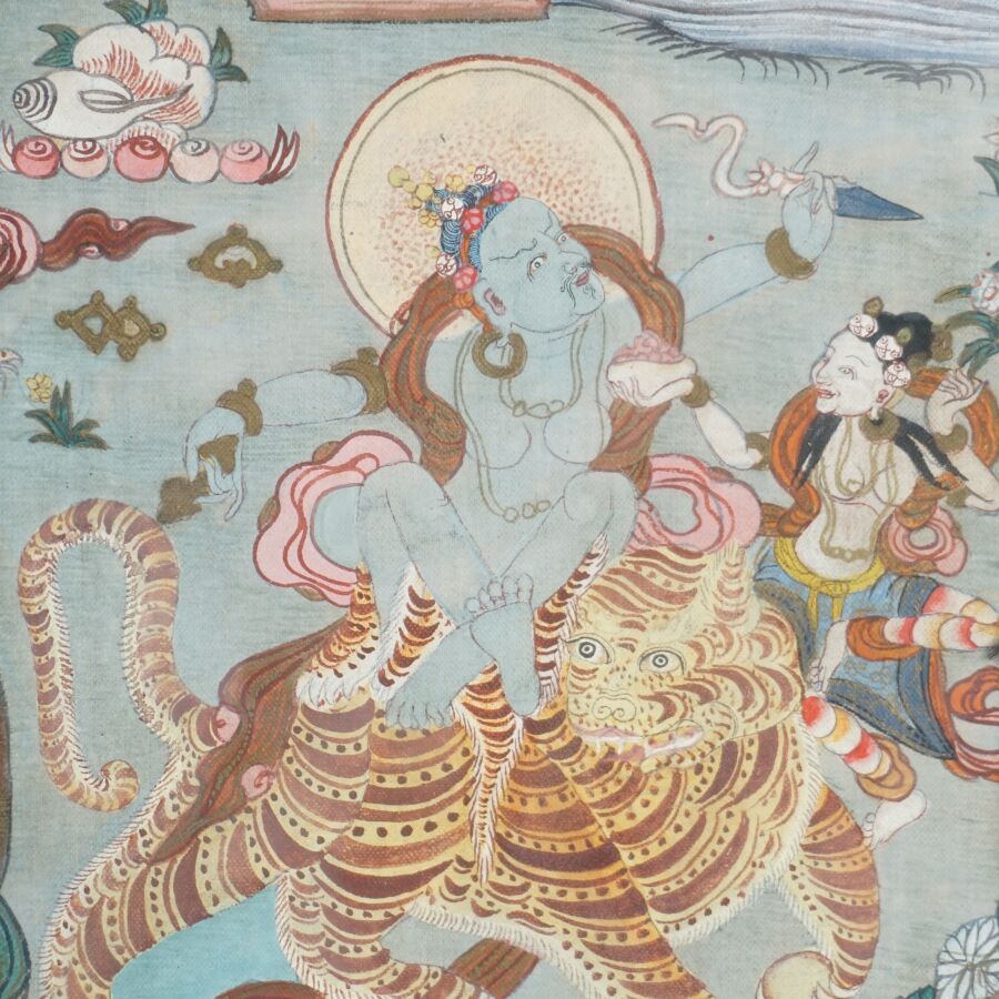 Tangka, couleurs sur soie, figurant des divinités dans un paysage montagneux, Népal, fin du 19ème siècle - début du 20ème siècle, 48 x 33.5 cm. * Expert : Cabinet Ansas & Papillon, De Léry