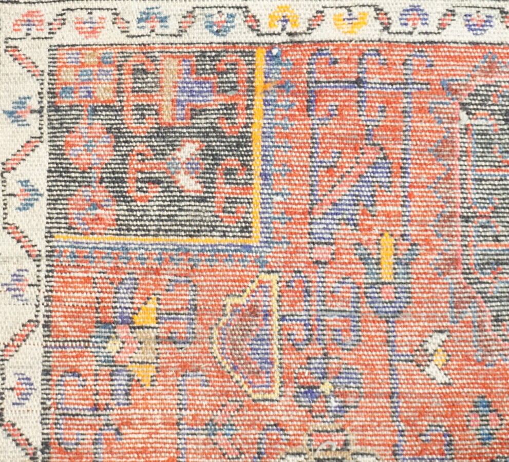 Tapis d'Iran en laine sur fond bleu et rouge à décor de fleurs, 220 x 135 cm.