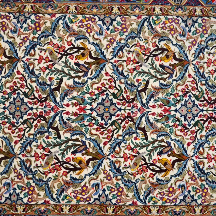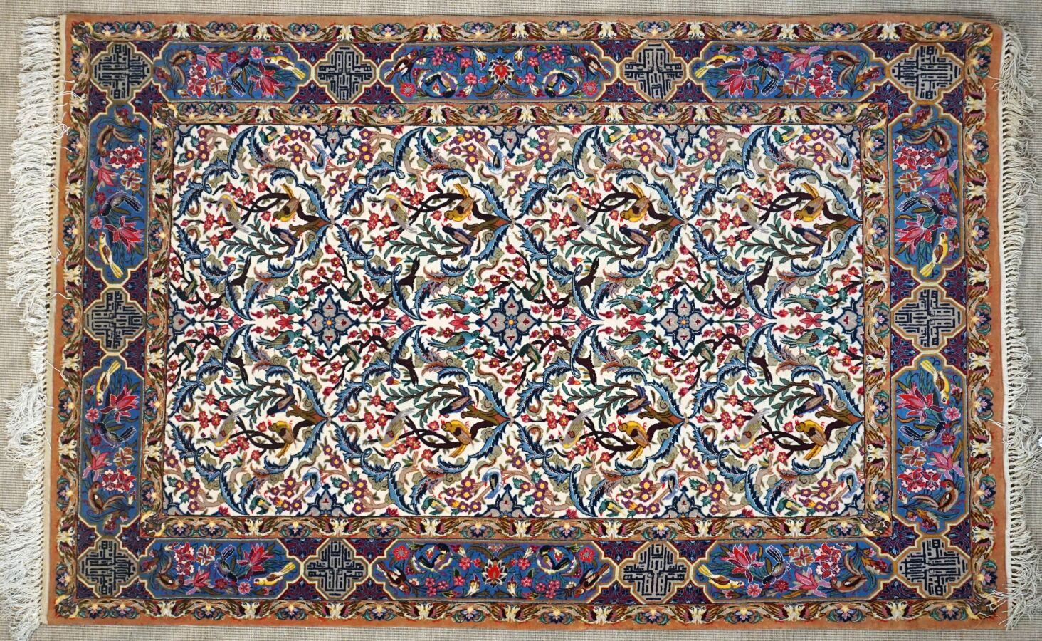 Tapis en laine et soie à décor polychrome de branches fleuries et de volatiles, Isphan (Iran), 172 x 109 cm.