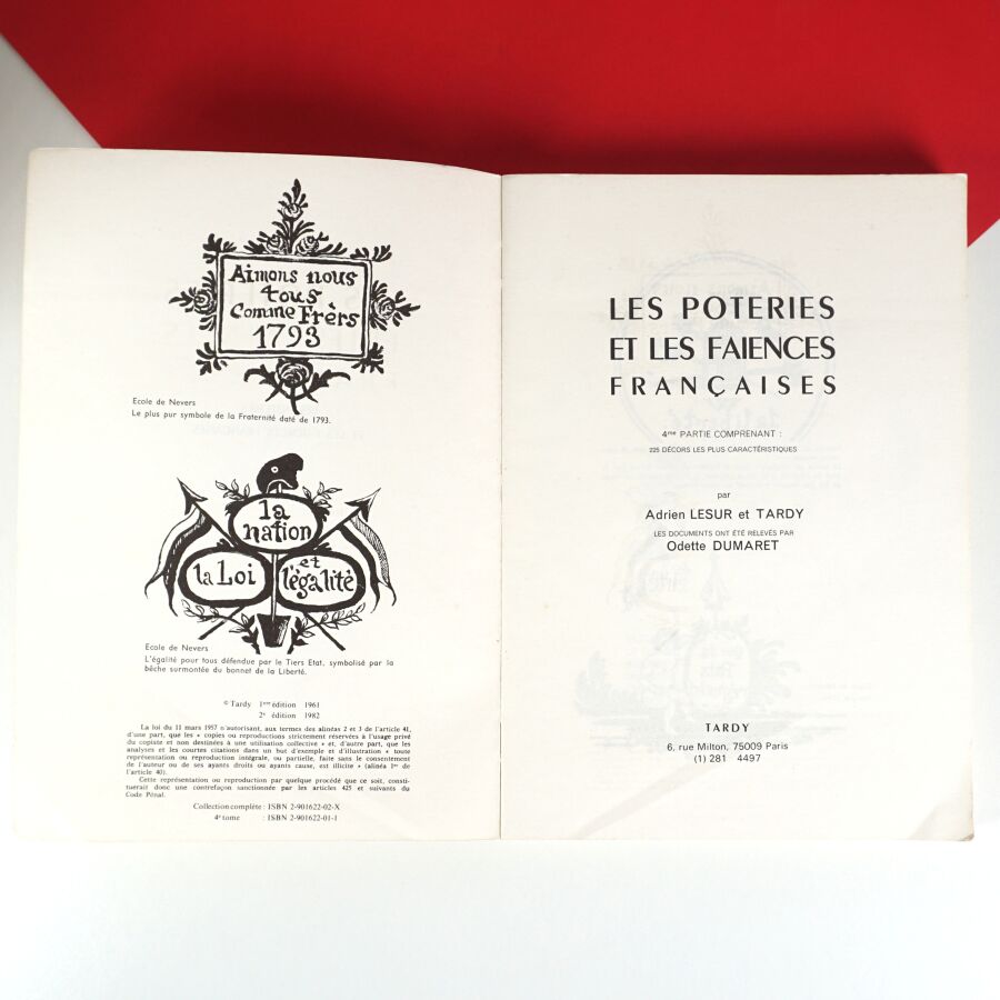 - 2 exemplaires de Les Porcelaines françaises. Historiques, caractéristiques, décors, couleurs, productions, contrefaçons, copies, marques…, par TARDY avec la collaboration d'Adrien LESUR. Paris, Tardy, 1981. Ill. en noir dans le texte.