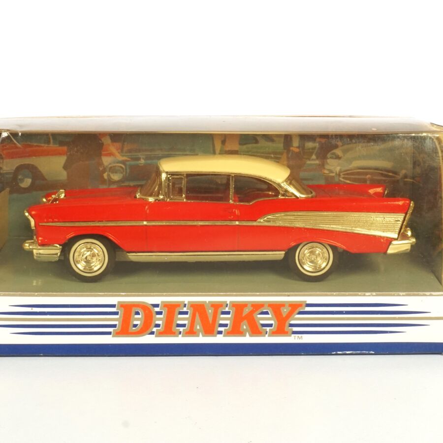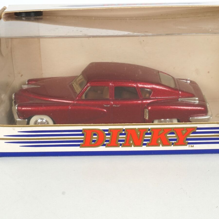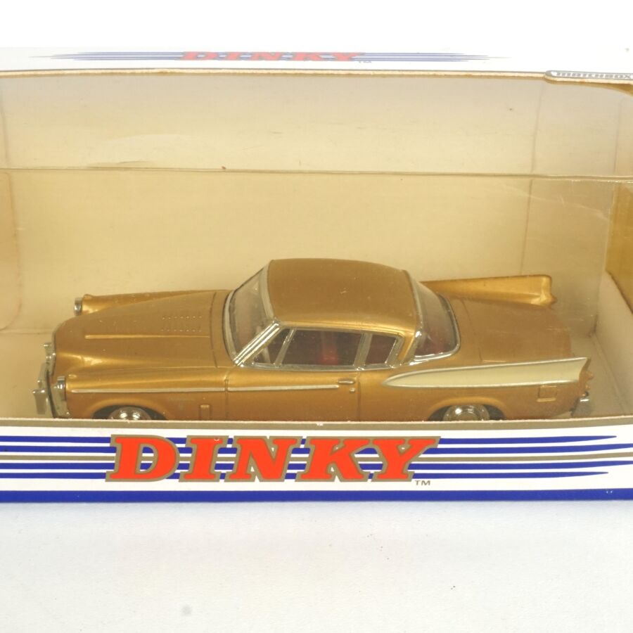 THE DINKY COLLECTION - MATCHBOX : Ensemble de 4 véhicules, échelle 1/43ème, comprenant (1) Ford V8 Pilot 1949, réf. DY-5, noire ; (1) Studebaker Golden Hawk, réf. DY-26, dorée ; (1) Tucker Torpedo 1948, réf. DY-11, rouge et (1) Chevrolet Bel Air 1957, réf. DY-2, rouge et crème, présentés en boîte d'origine (écaillures, usures).