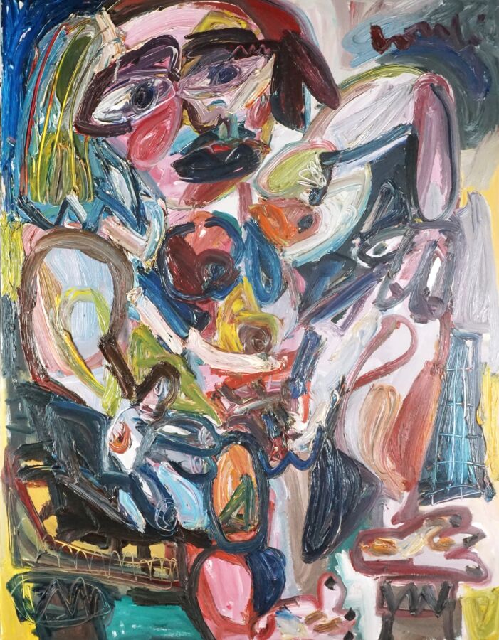 Thierry LOULÉ (1967), "Personnage", huile sur toile signée en haut à droite, 117 x 89 cm.