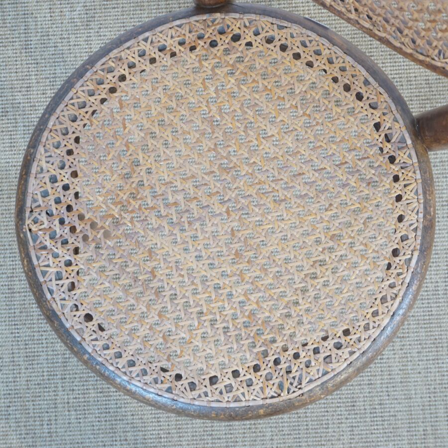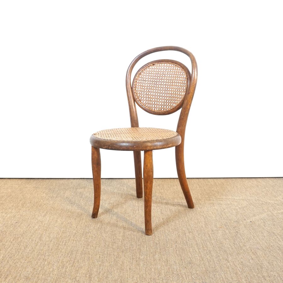 THONET : Chaise pour enfant, bois courbé et cannage, marquée dessous, H. 64 cm (rayures et usures d'usage).
