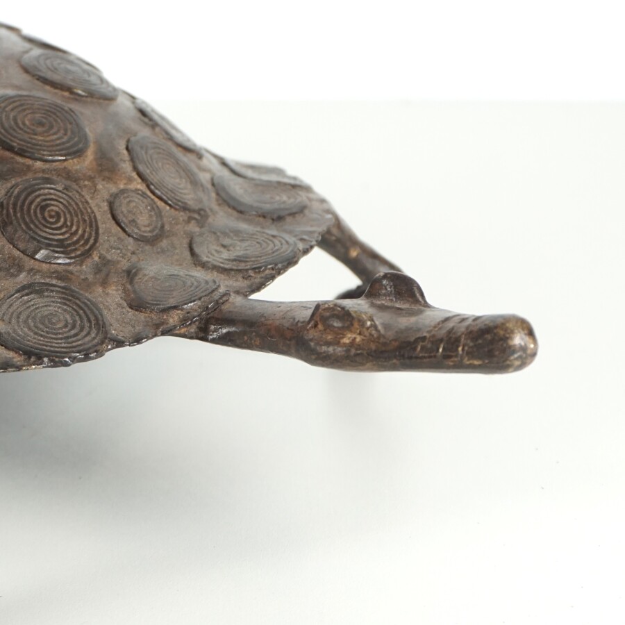 Tortue, sculpture en bronze à patine brune, travail décoratif moderne, L. 55 cm.