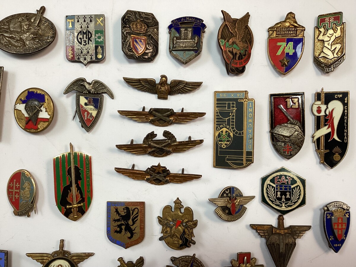 TOUTES ARMES - Ensemble comprenant environ 50 INSIGNES REGIMENTAIRES, principalement DRAGO PARIS, BE/TBE.
