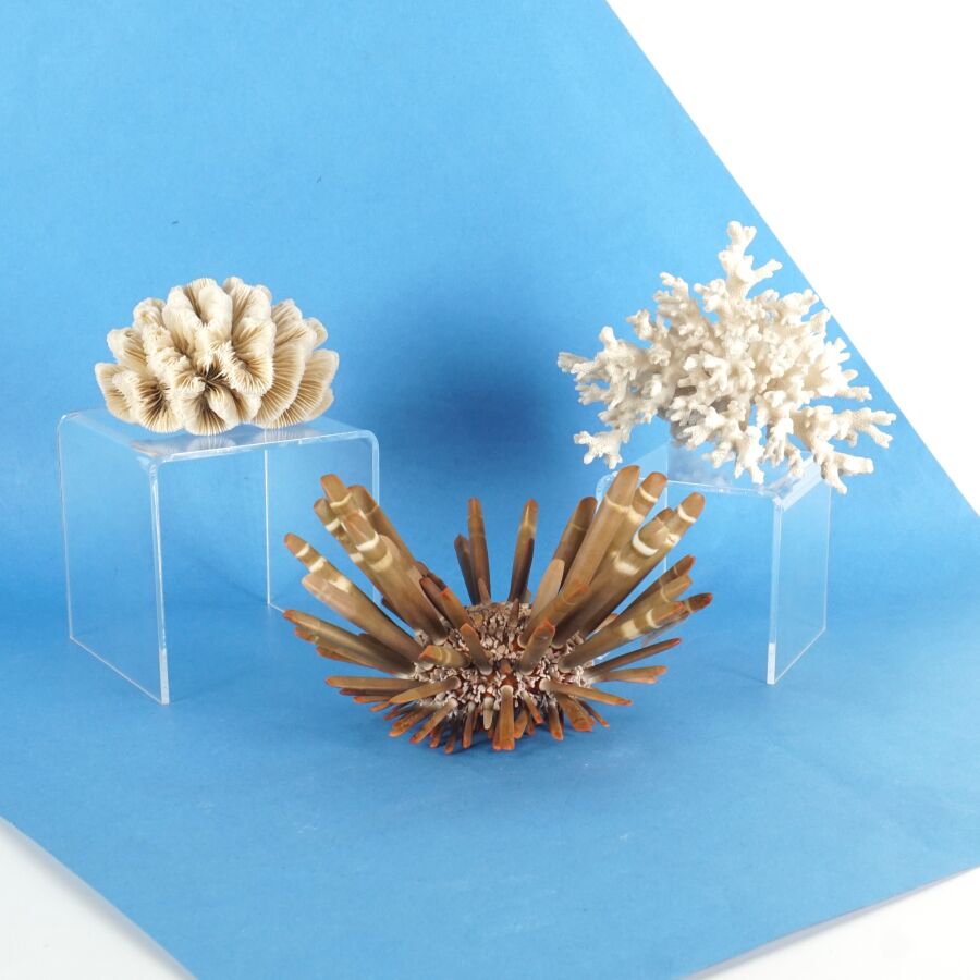 Trois éléments comprenant un oursin crayon et coraux blancs, L. 14 cm et 9.5 cm (accidents et manques).