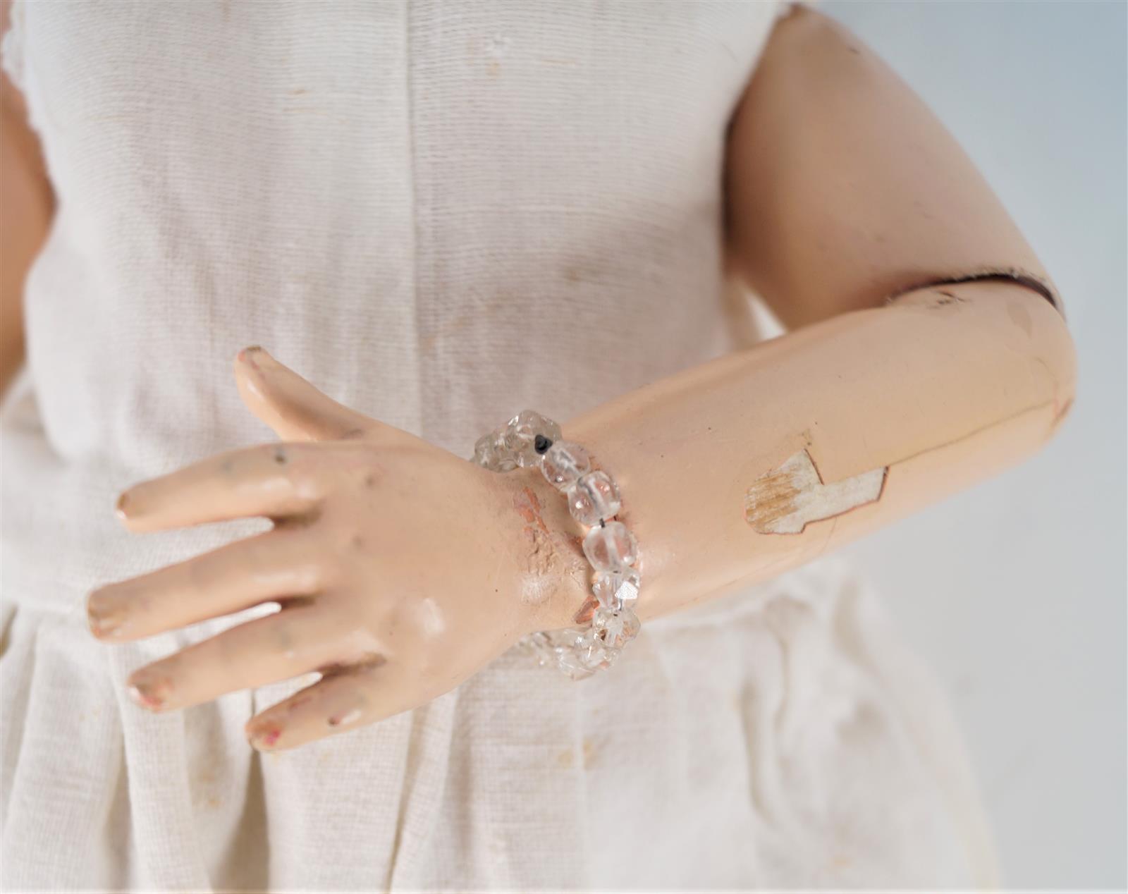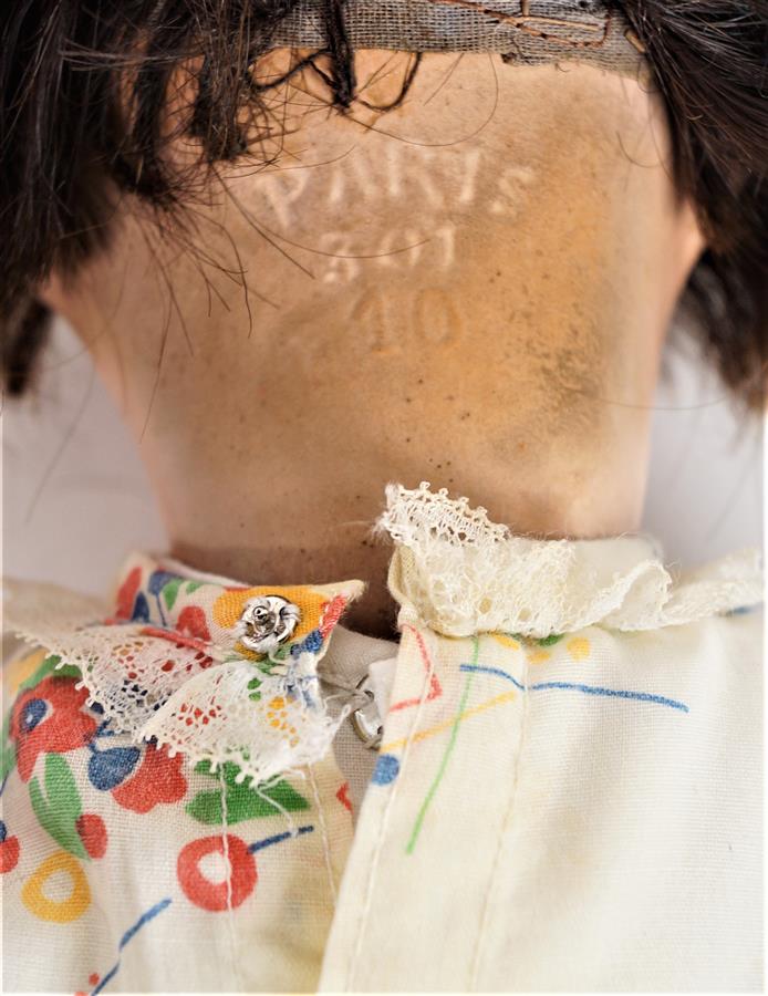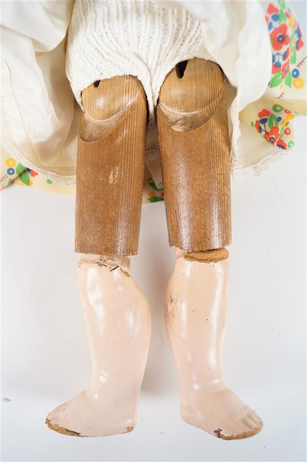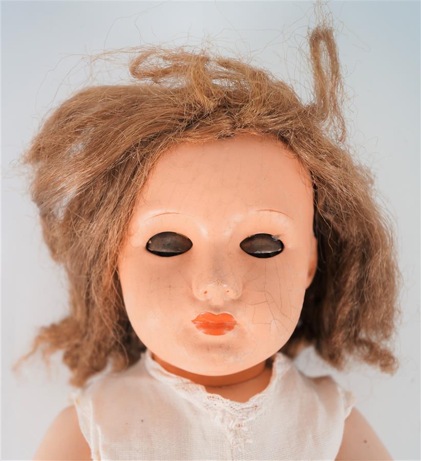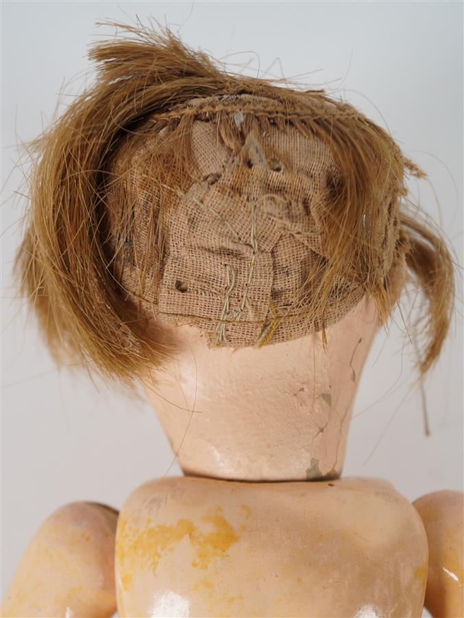 Trois poupées, têtes carton, H. 52 et 30 cm.