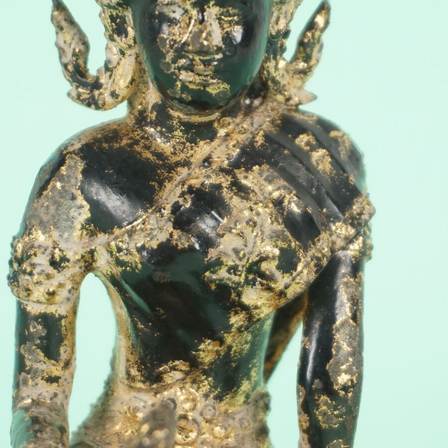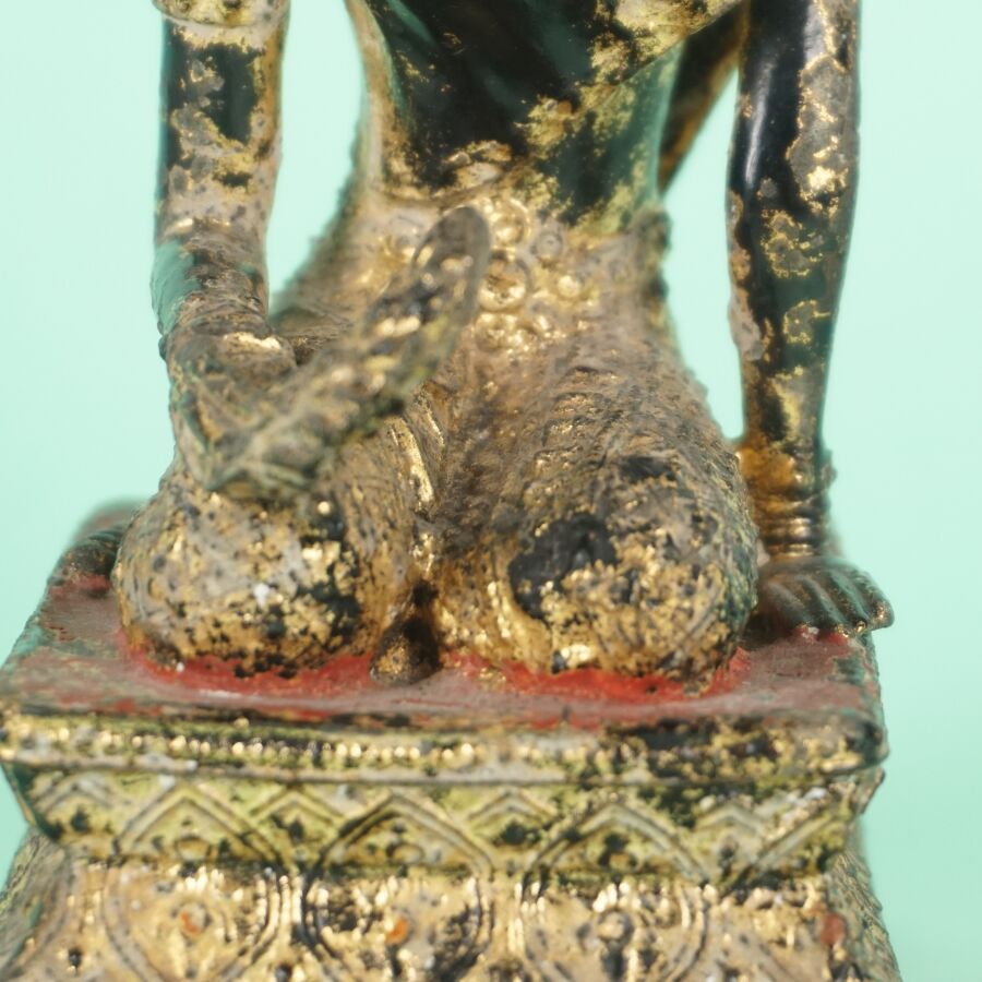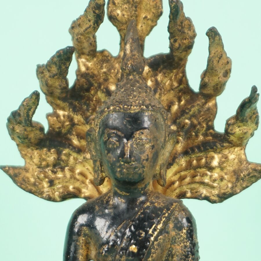 Trois statuettes figurant bouddha, bronze, l'un représenté en prise de la terre à témoin, le deuxième en Samadhi sous le serpent Muçilinda et le troisième représenté agenouillé sur un socle tenant une branche, Birmanie et Rattanakosin, 20ème siècle, H. 13.5 cm ; 20 cm et 13 cm.