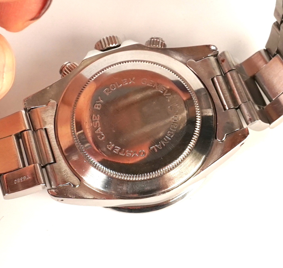 TUDOR : Montre d'homme "Prince Date Chrono by Rolex" en acier, cadran panda, dateur à 3h, D. 4 cm, mouvement Valjoux 7750 chronographe à remontage automatique, réf. fond intérieur 9420, réf. embout 589, bracelet articulé réf. 78360, boucle déployante signée Rolex réf. 62510H, L. 17 cm.