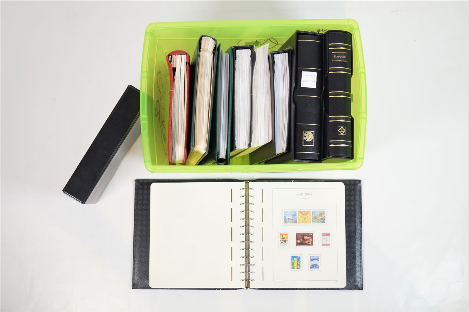 Un carton, collections Mayotte 1997/2011, Europa1956/2009, Jersey 2001/2010, Andorre 1929/2011, Vatican du début à 2011, France "blocs souvenirs" en albums.