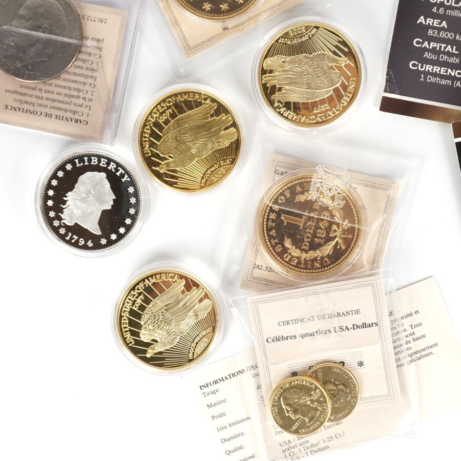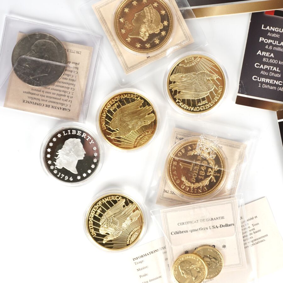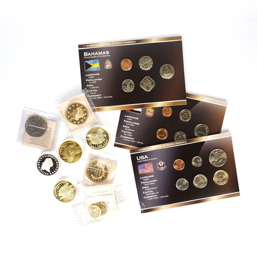 USA : Lot de 9 médailles commémoratives et 3 Sest de 16 monnaies USA/Bahamas/VAE.