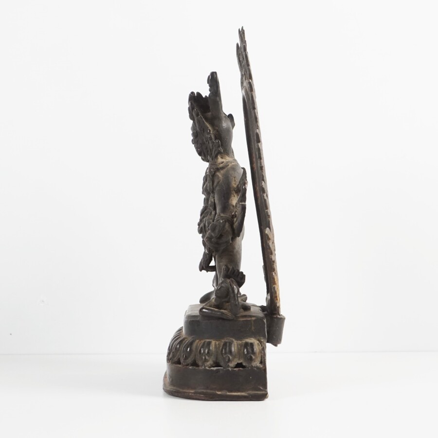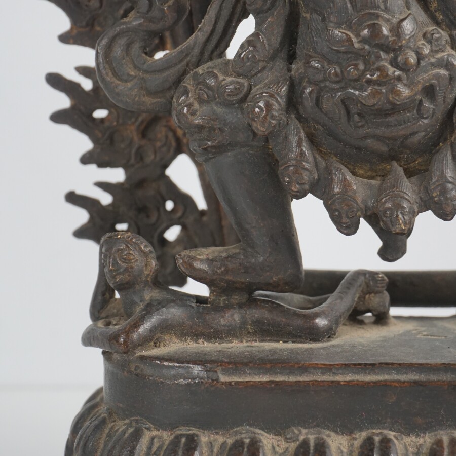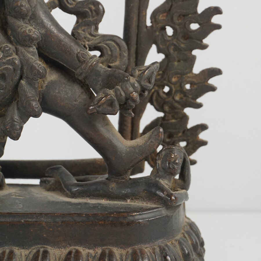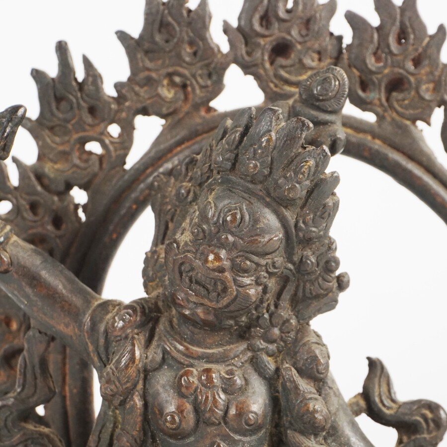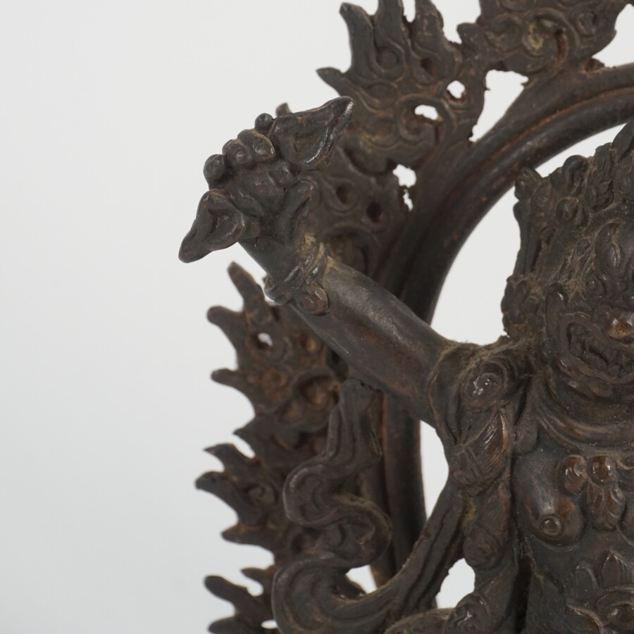 Vajrapani en bronze, présenté debout sur deux hommes reposant sur un lotus tenant les deux vajra dans chaque main, mandorle en forme de flamme, Tibet, milieu du 19ème siècle, H. 18.5 cm.