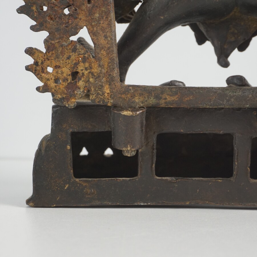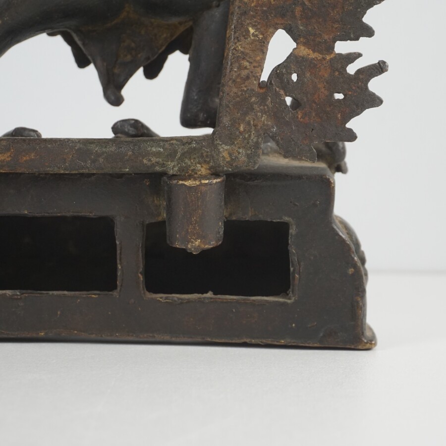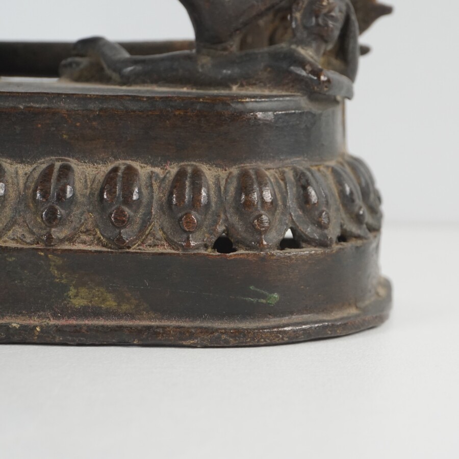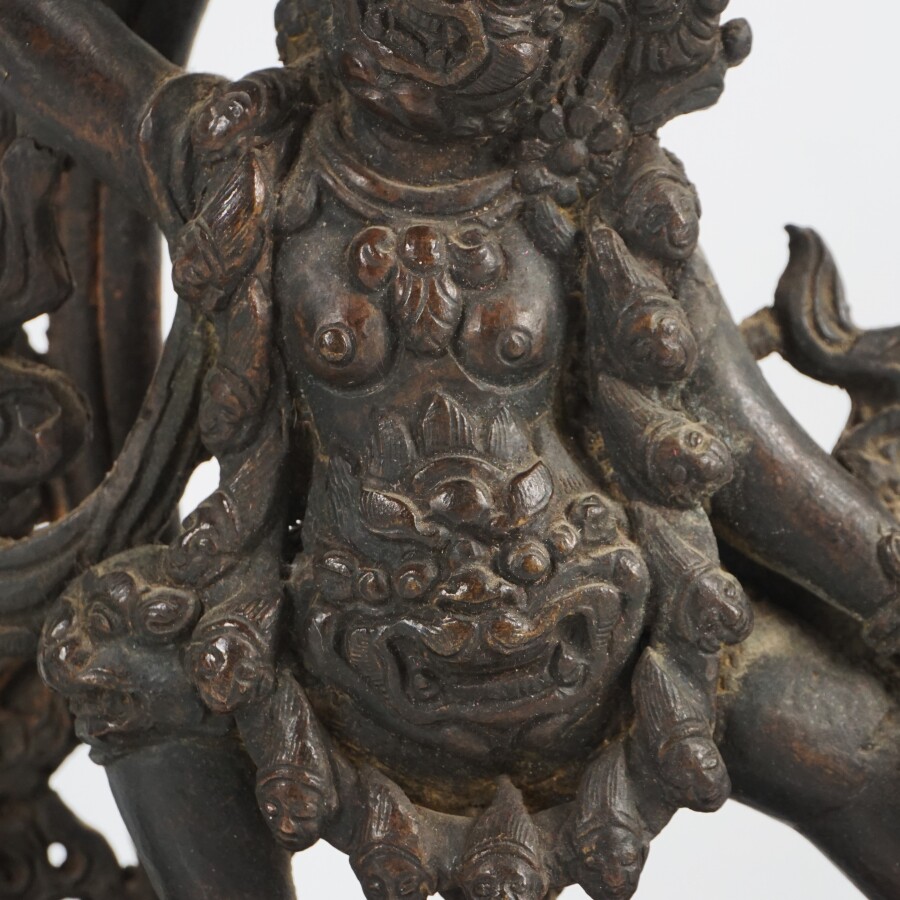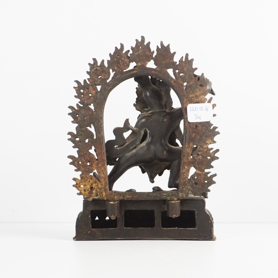 Vajrapani en bronze, présenté debout sur deux hommes reposant sur un lotus tenant les deux vajra dans chaque main, mandorle en forme de flamme, Tibet, milieu du 19ème siècle, H. 18.5 cm.