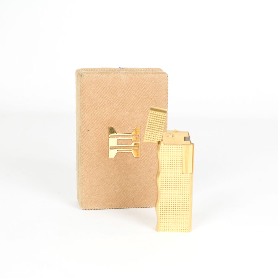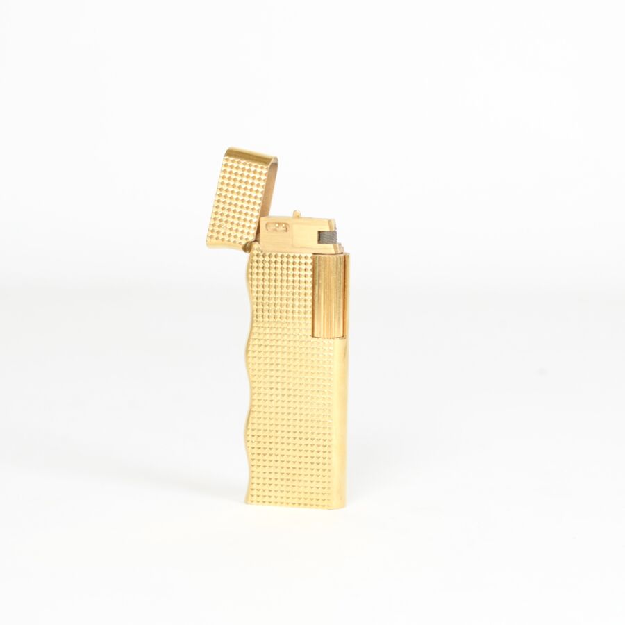 VAN CLEEF & ARPELS : Briquet en métal doré décor en pointes de diamants, (usures), L. 2.5 cm, H. 7.5 cm