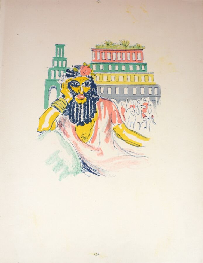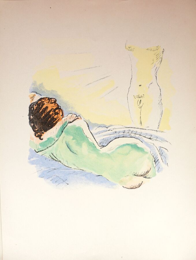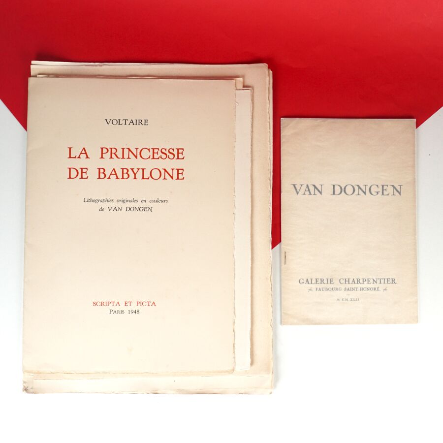 VAN DONGEN (Kees) & VOLTAIRE. La Princesse de Babylone. Paris, Scripta & Picta, 1948. SPECIMEN in-folio renfermant le feuillet de titre, le feuillet de justification ""imprimé pour Monsieur Raoul Dufy"", 12 planches (10 en couleurs et 2 en noir) sur divers papiers dont une refusée.