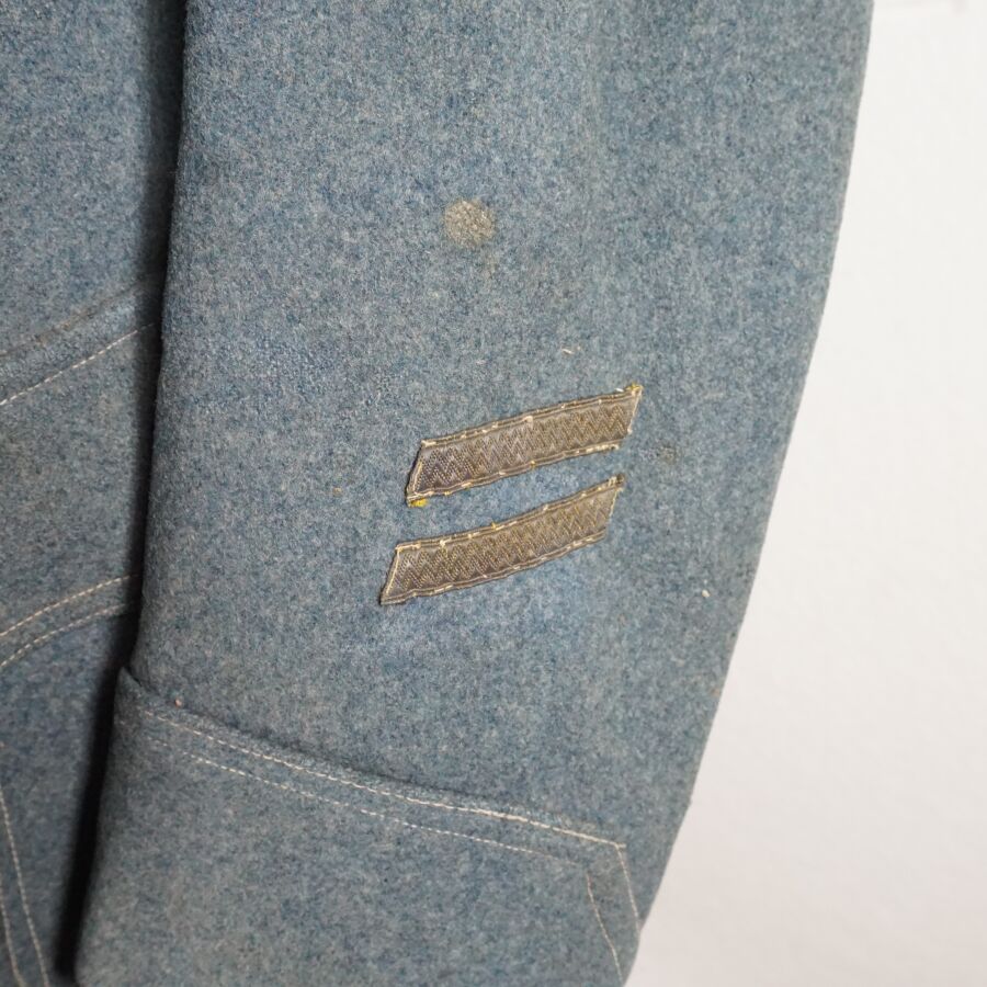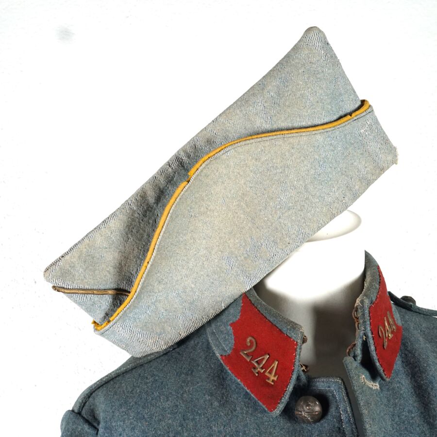On joint un BONNET DE POLICE DE SOUS-LIEUTENANT en drap bleu horizon, passepoil jaune, EM.