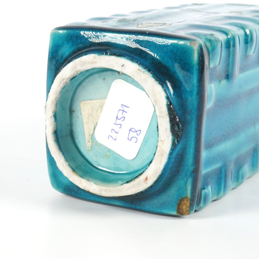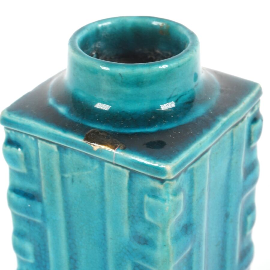 Vase cong quadrangulaire, en grès émaillé bleu turquoise, Chine, 18ème siècle, H. 14,5 cm. (petit défaut sur le pourtour du col).