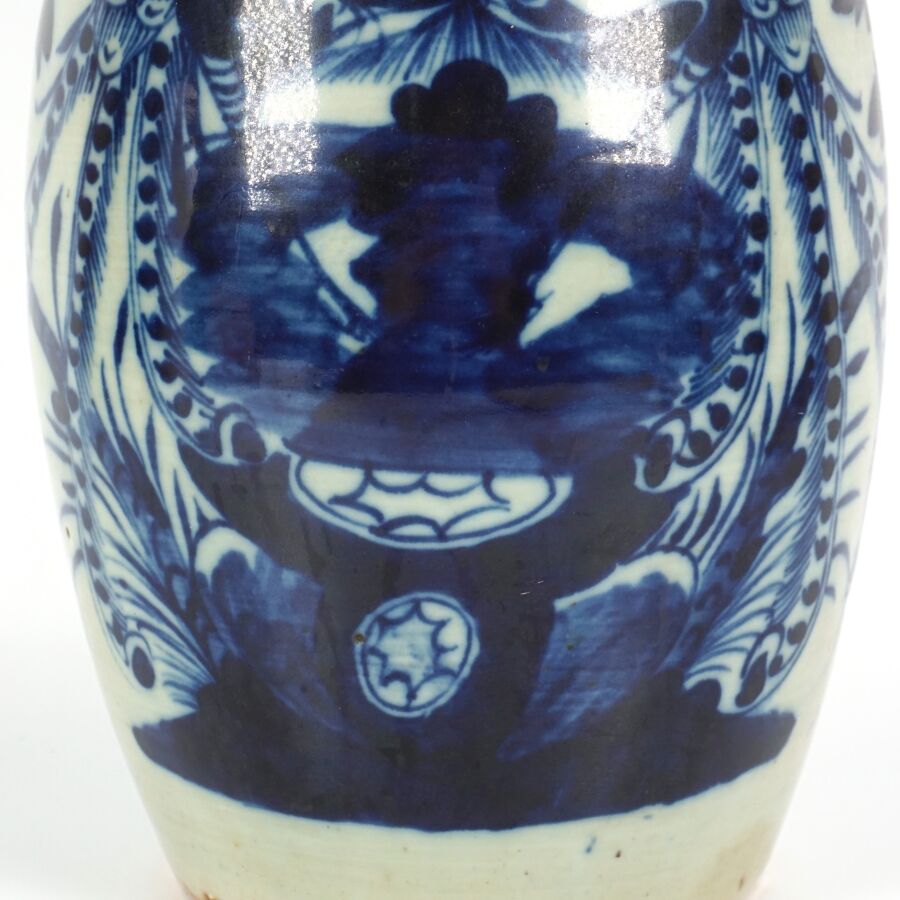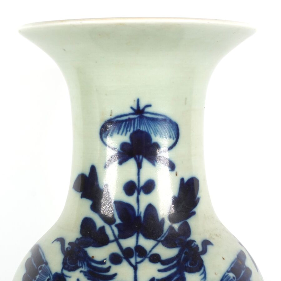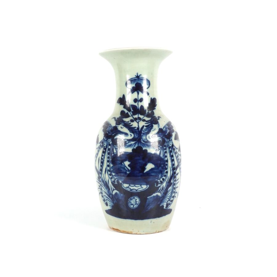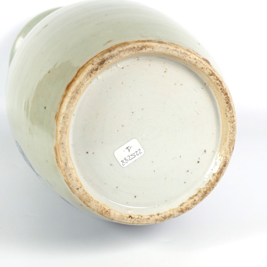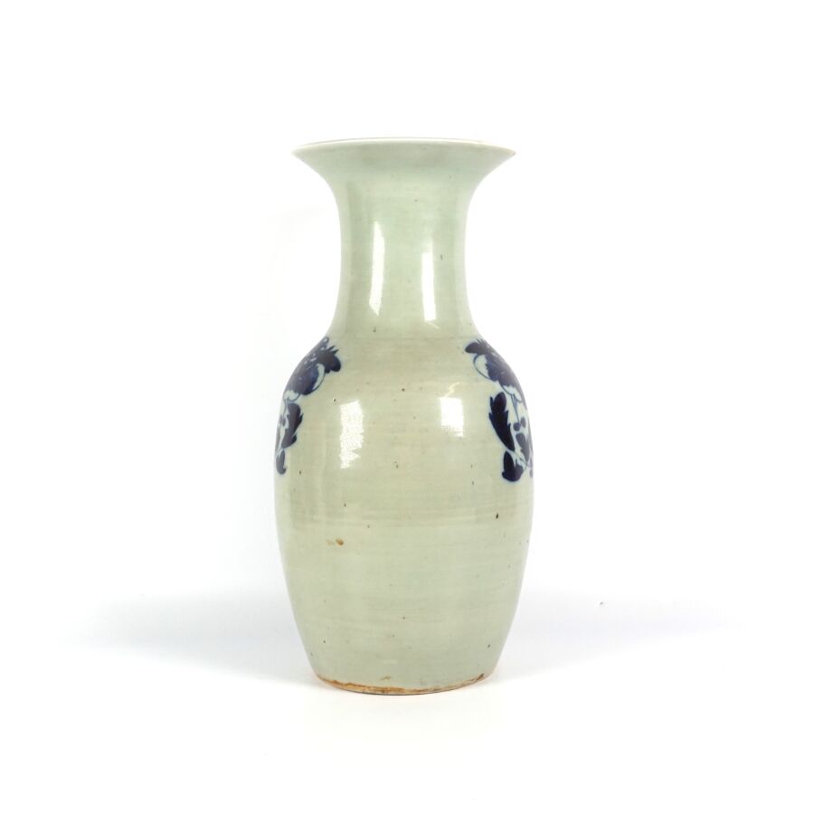Vase de forme balustre, en porcelaine émaillée céladon, à décor en bleu, de figures fantastiques et branchages, Chine, fin du 19ème siècle, H. 41 cm.