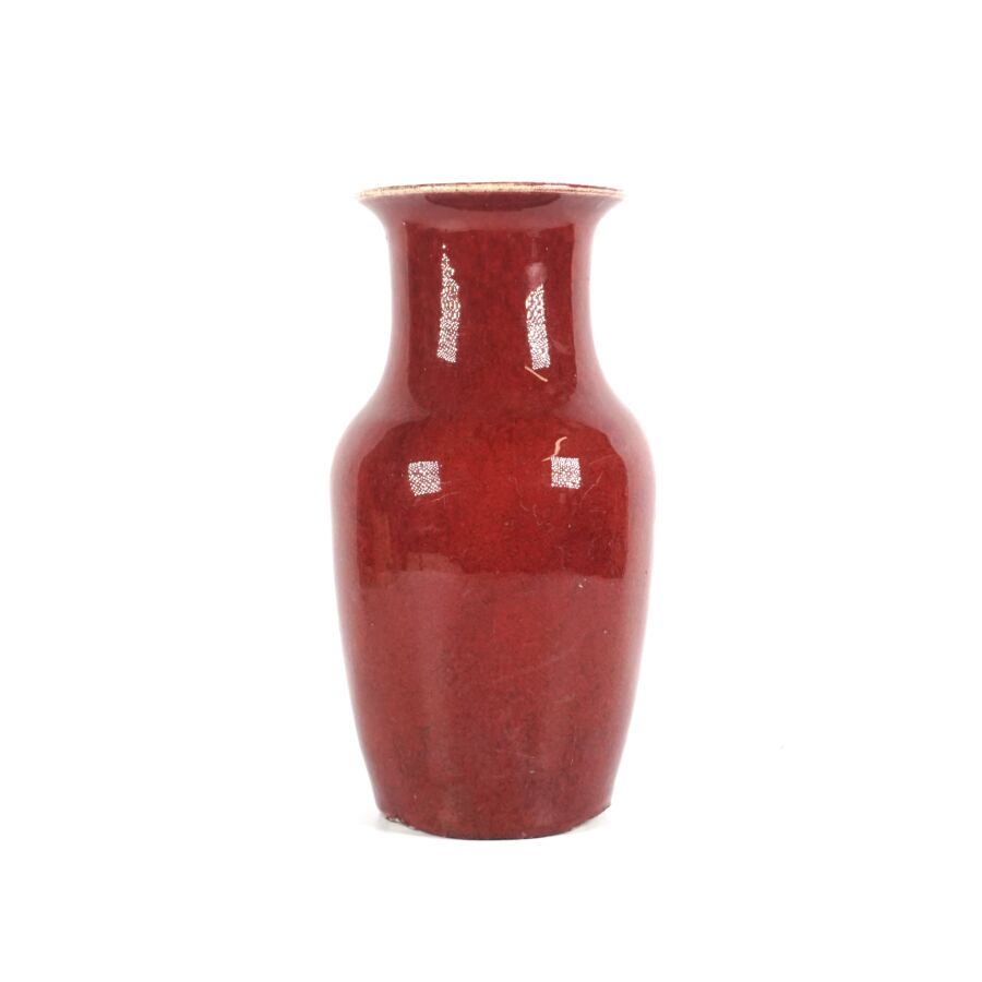 Vase de forme balustre en porcelaine émaillée sang de boeuf, Chine, 19ème siècle, H. 32 cm.