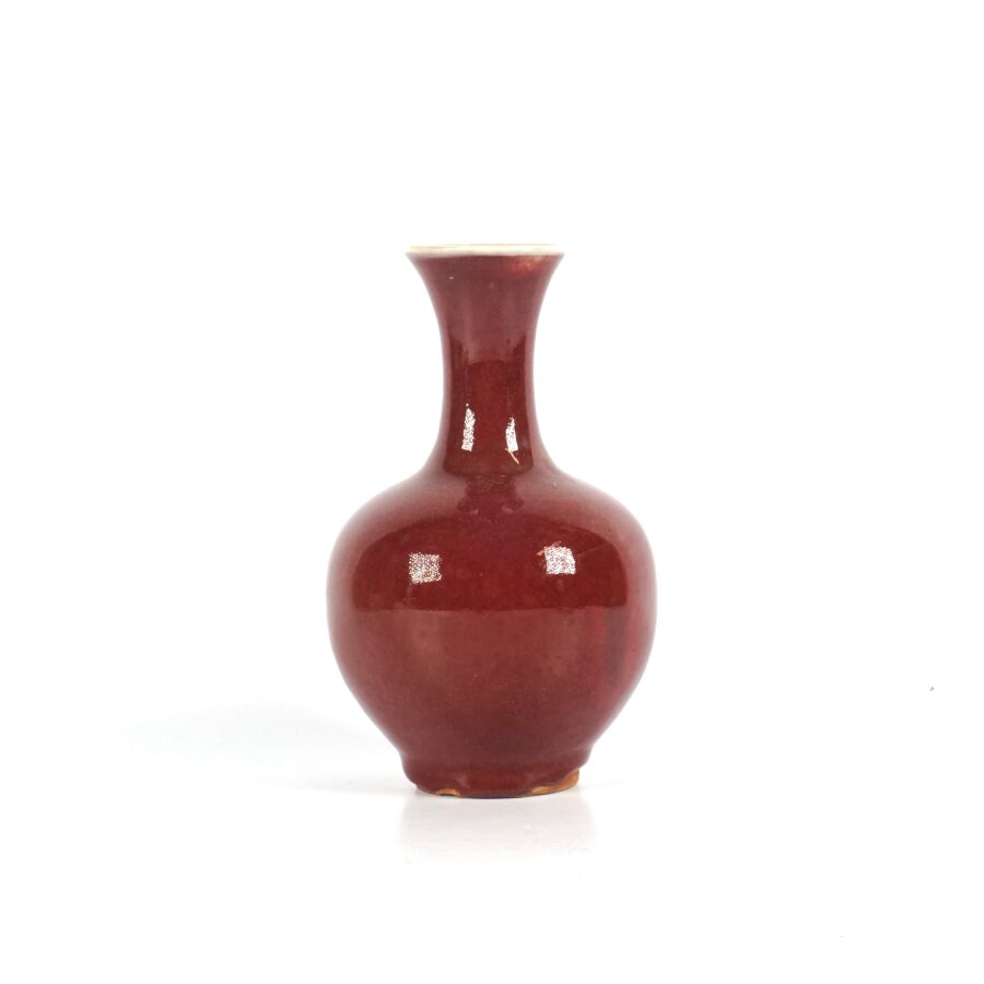 Vase de forme balustre en porcelaine émaillée sang de boeuf, Chine, 19ème siècle, H. 19 cm.