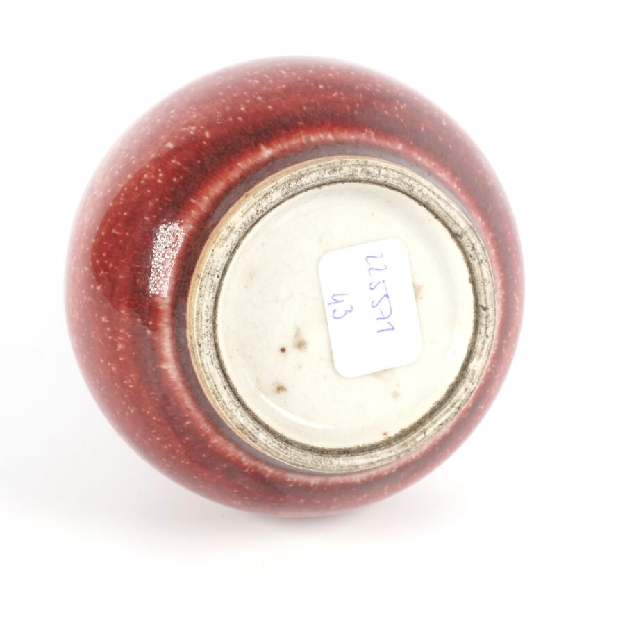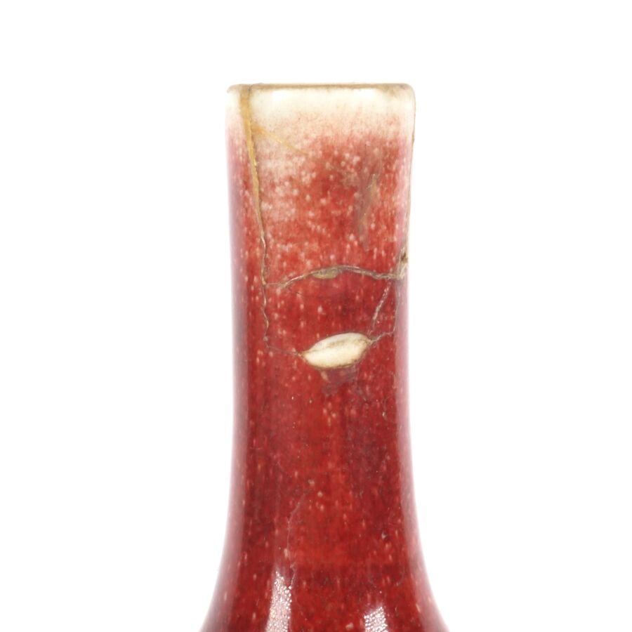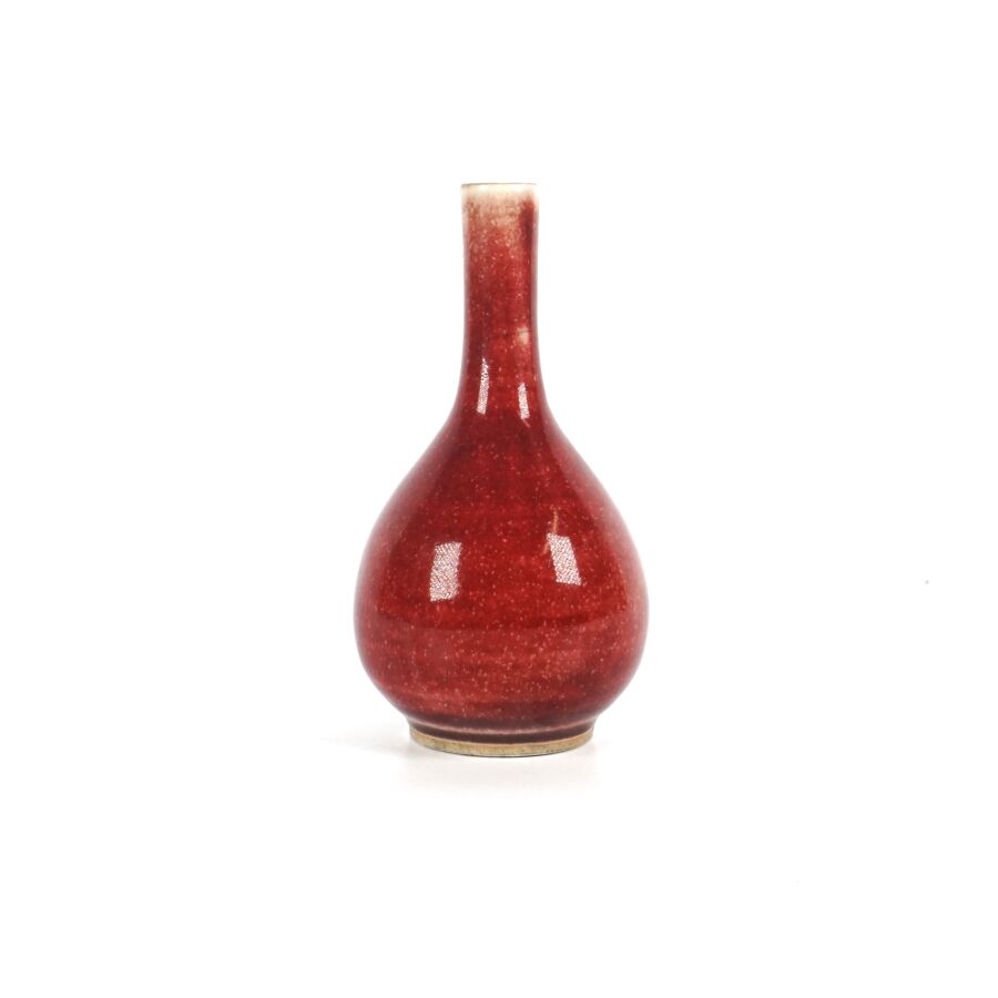 Vase de forme bouteille en porcelaine émaillée sang de boeuf, Chine, 19ème siècle, H. 15.8 cm (restauration au col).
