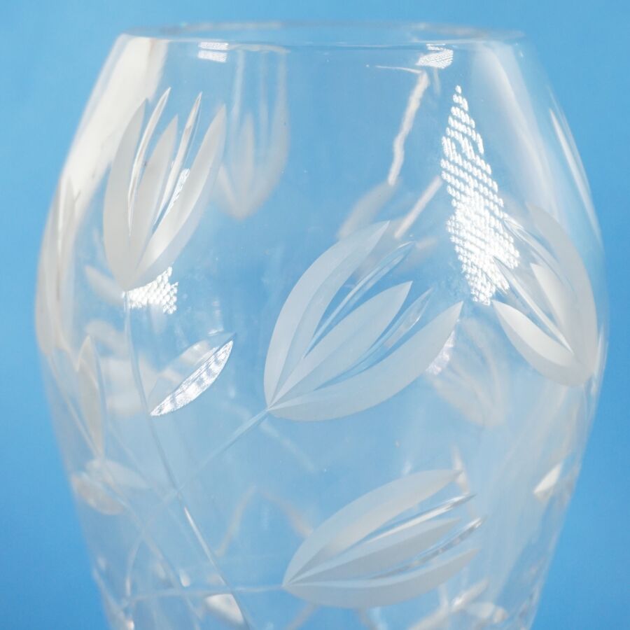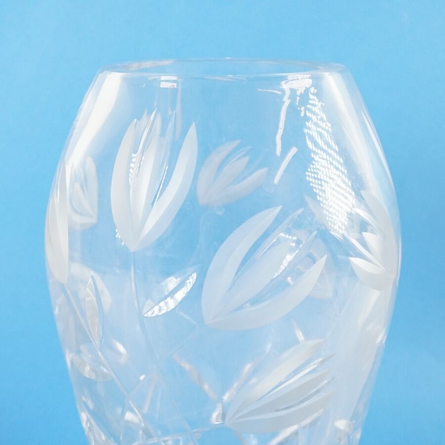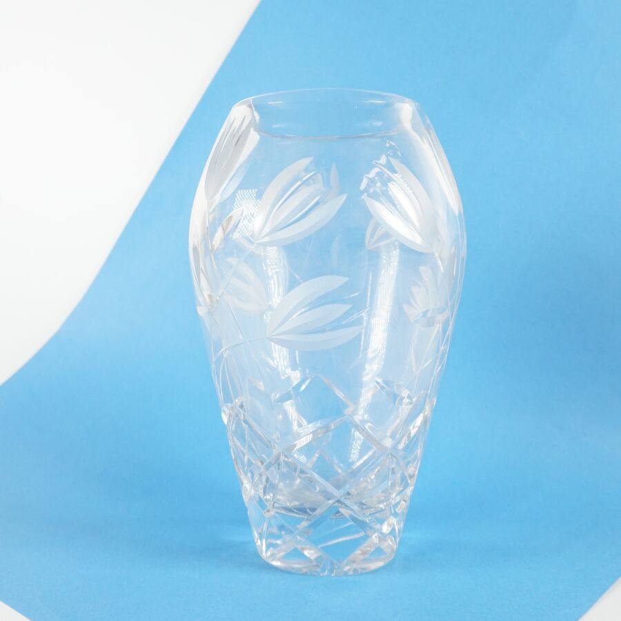 Vase de forme ovoïde en verre taillé à décor fleuri, H. 26 cm