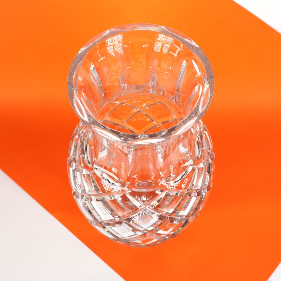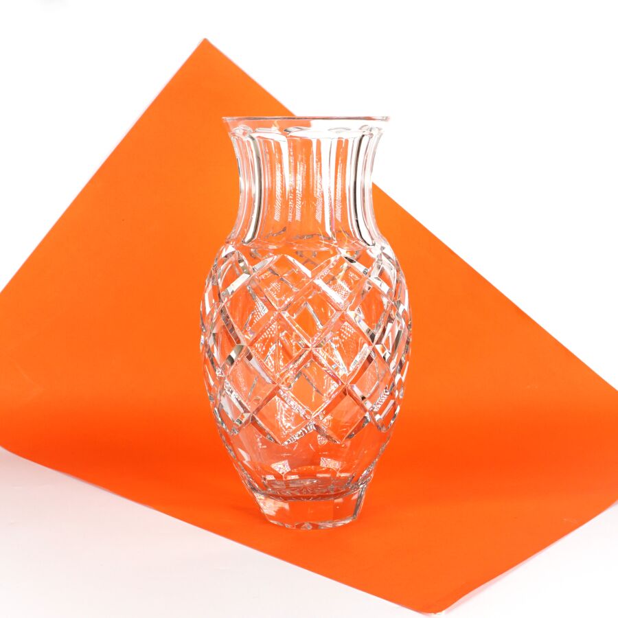 Vase en cristal de forme balustre à décor quadrillé, 20ème siècle, H. 35 cm (légères rayures).