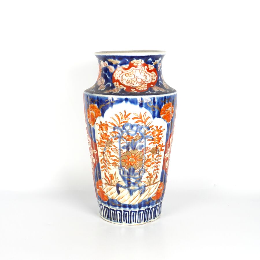Vase en porcelaine émaillée dite Imari à décor de paniers fleuris, Japon, début du 20ème siècle, H. 27.5 cm.