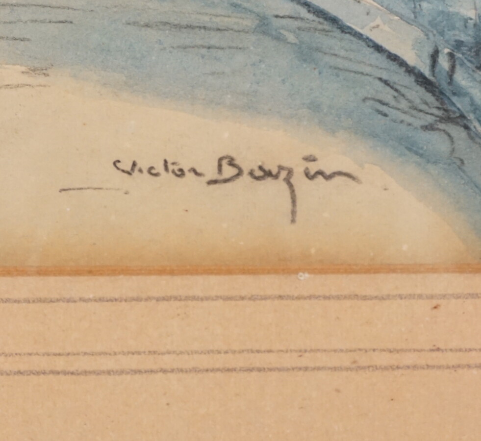 Victor BAZIN (1897 - 1956), "Intérieur de la cathédrale de Chartres", dessin aquarellé, signé en bas à droite, 31 x 53 cm (infimes taches en bas).